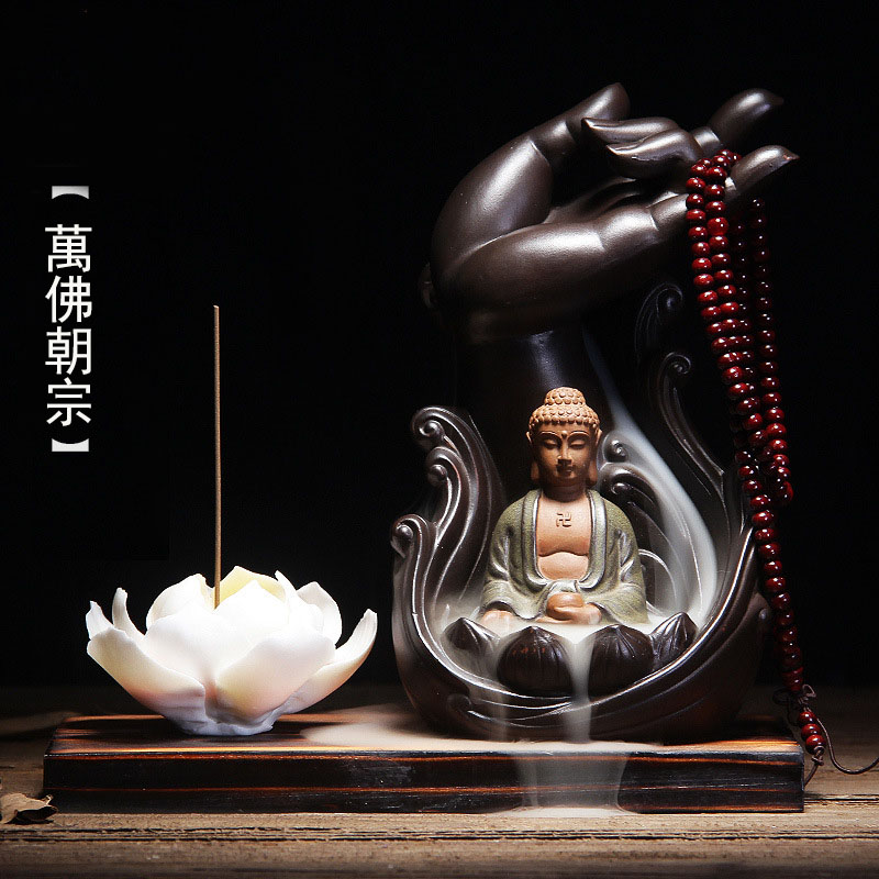 倒流香爐佛手如來觀音陶瓷擺件