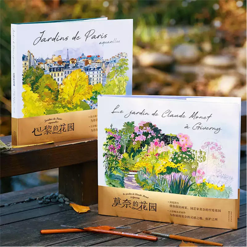 莫奈的花園+巴黎的花園 水彩筆記(共2冊)145幅水彩畫作品描繪諾曼底花園 走進畫家園藝家莫奈的繽紛世界 水彩繪畫藝術插畫圖集