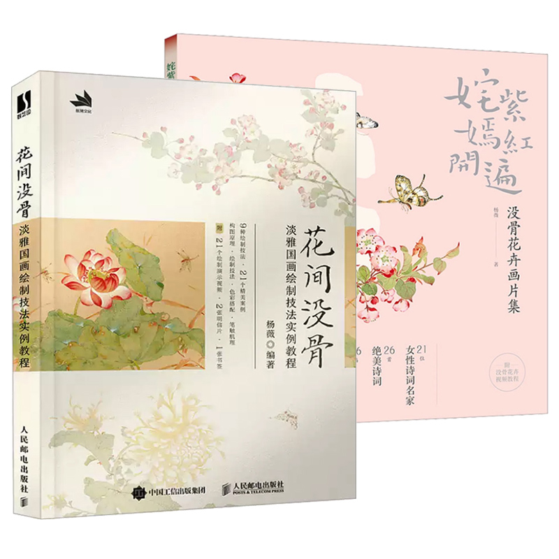 花間沒骨 淡雅國畫繪製技法實例教學+奼紫嫣紅開遍 沒骨花卉畫片集 (共2冊)