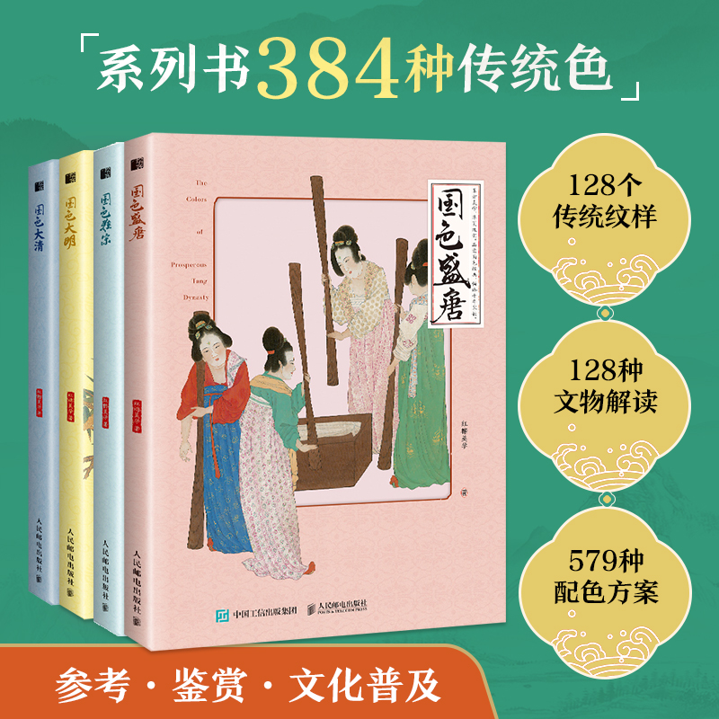 國色系列【套裝4冊】 雅宋+大清+盛唐+大明 中華傳統色 中華色彩文化服飾紋樣 建築色彩藝術史 唐宋明清色彩文化 色彩美學 紋樣服飾建築色彩藝術