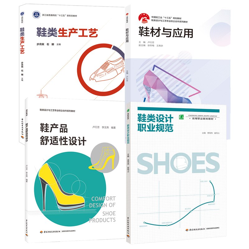 鞋產品舒適性設計+鞋材與應用+鞋類生產工藝+鞋類設計職業規範 (共4冊)皮鞋運動鞋球鞋鞋類設計規範 製鞋技術書