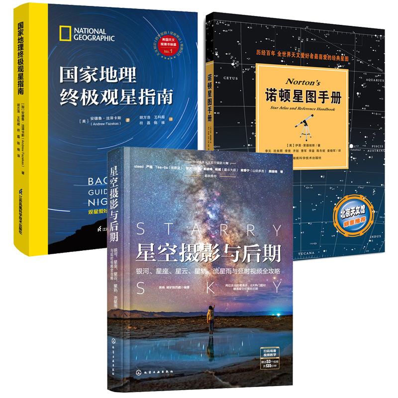 國家地理終極觀星指南+諾頓星圖手冊+ 星空攝影與後期:銀河、星座、星雲、星軌、流星雨與延時視頻全攻略(共3冊)