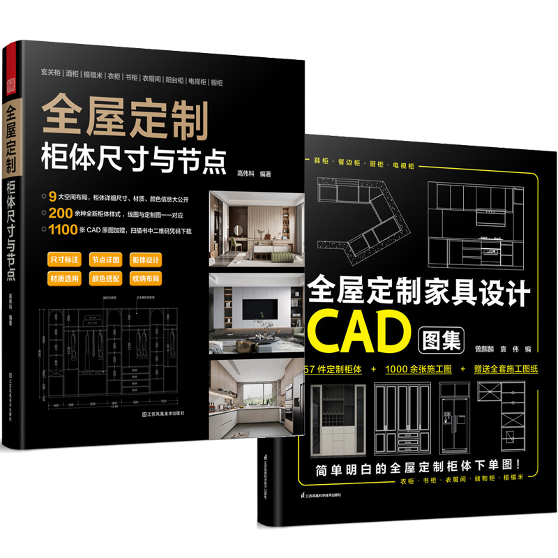 全屋訂製:櫃體尺寸與節點+家具設計CAD圖集(共2冊)