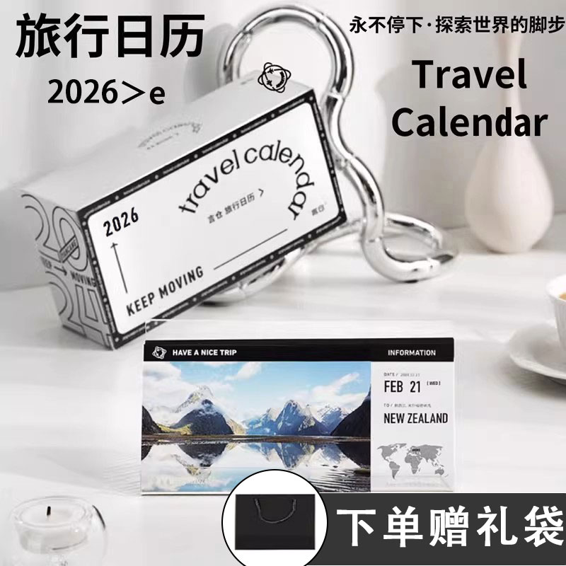 環球旅遊機票日曆 2026年臺曆(禮盒裝)附贈pvc取景框卡+透明亞克力支架+玄墨禮袋 2026年一起擁有出發的勇氣把“想去的地方”都變成“到過的地方”去遇見更多藏在世界裡的驚喜
