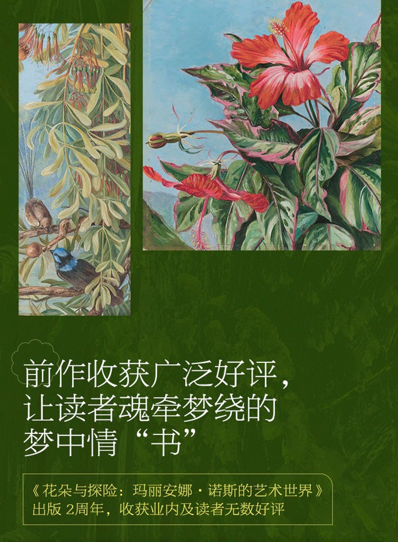 本書作為《花朵與探險:瑪麗安娜·諾斯的藝術世界》的璀璨續篇,精心收錄了諾斯畫廊中剩餘的400餘幅珍貴畫作(包括大量旅行風景、風土人情的記錄),兩本組成了一座完整的諾斯畫廊,把維多利亞女王親封“國家的禮物”帶回家。