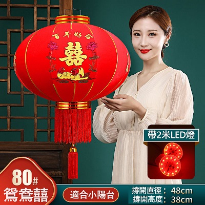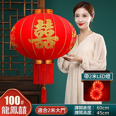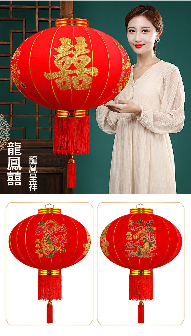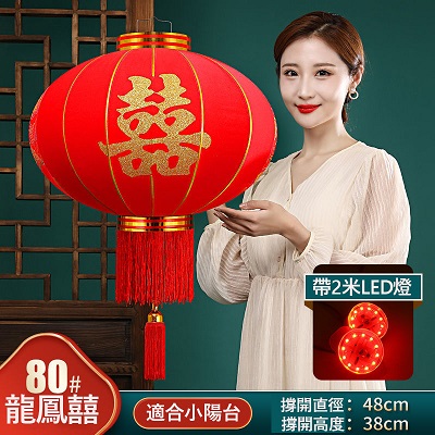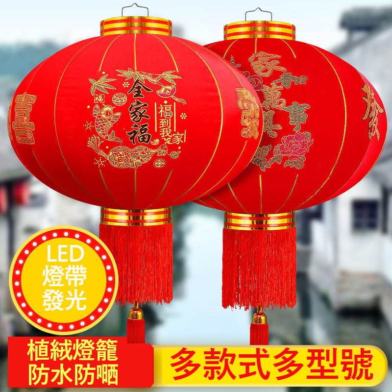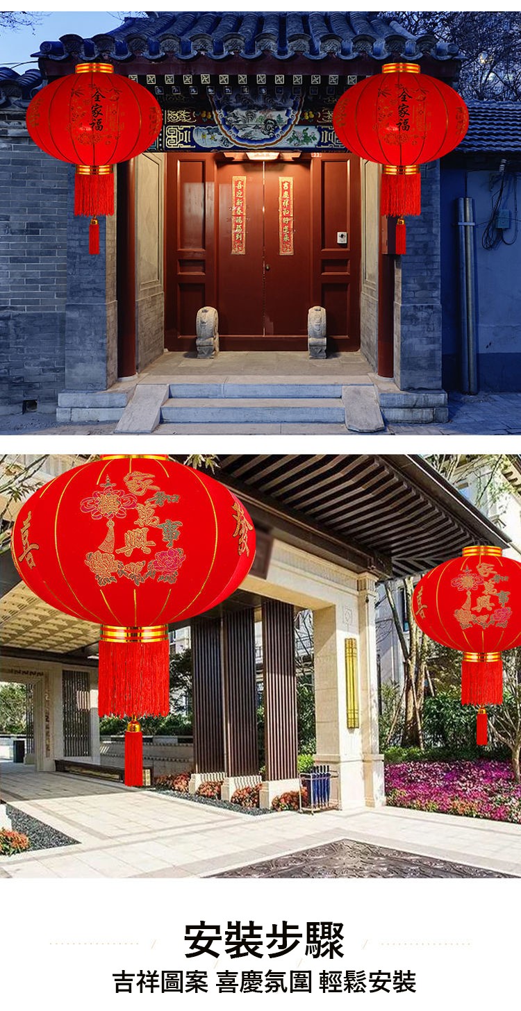 春節大紅燈籠結婚喜字燈籠新年婚慶戶外防水植絨燈籠喬遷陽檯燈籠(送2米LED燈帶)