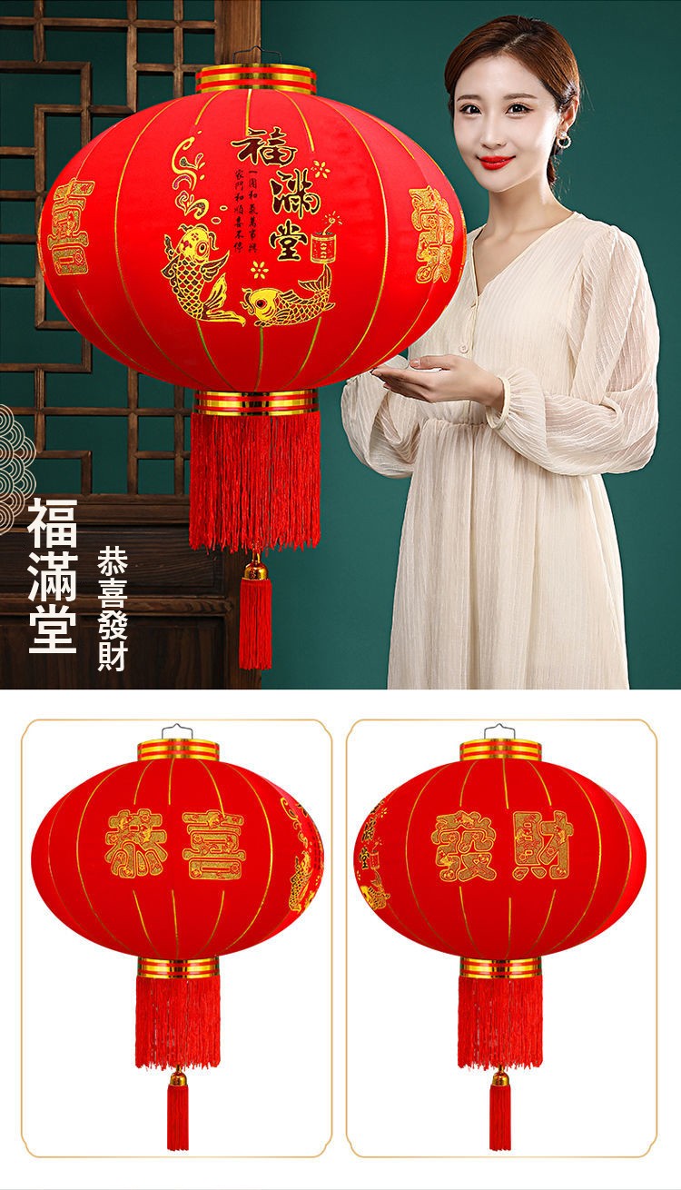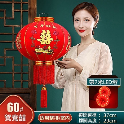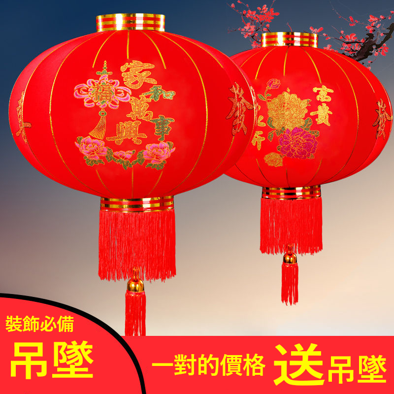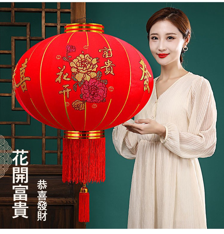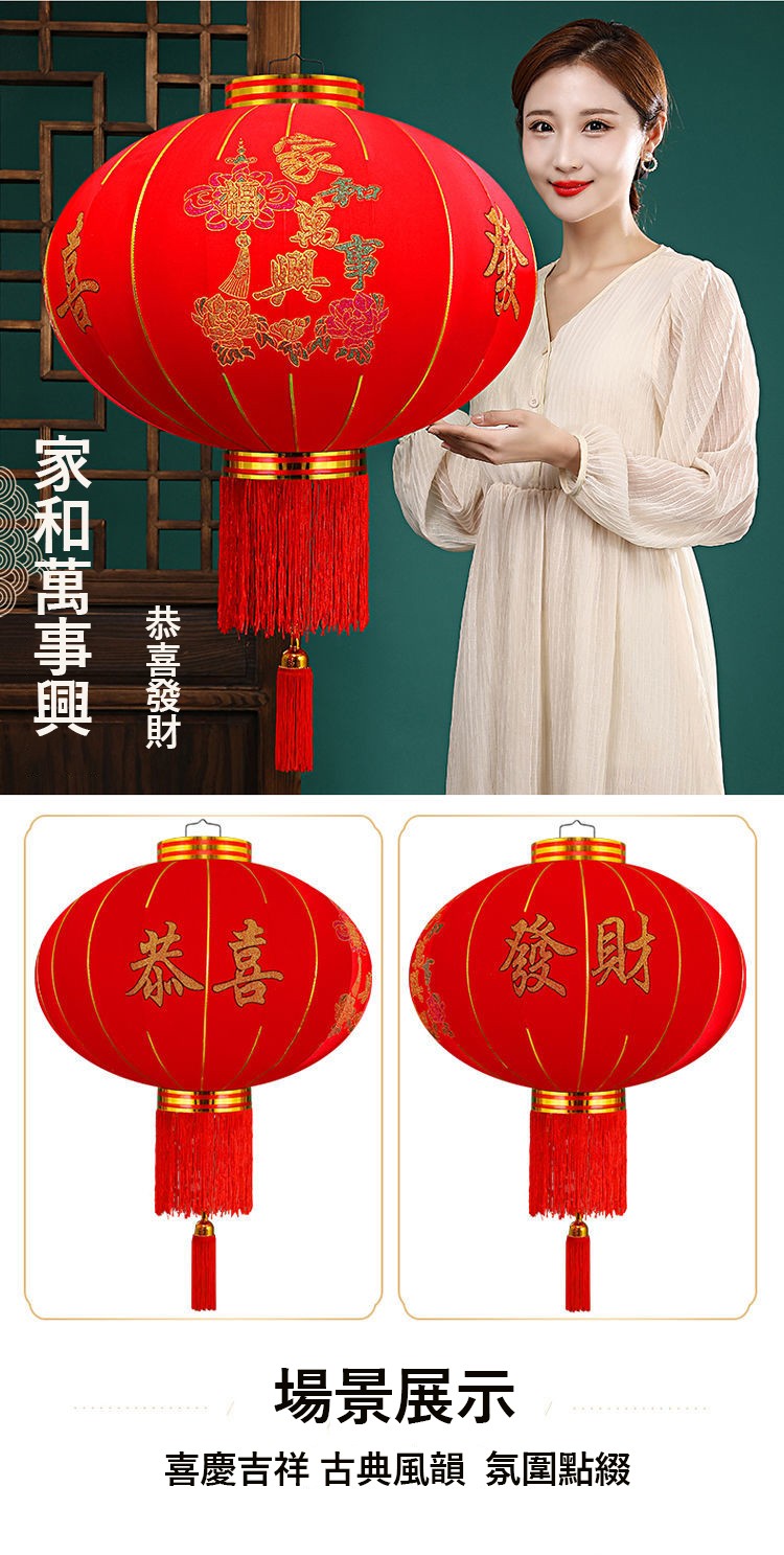 春節大紅燈籠結婚喜字燈籠新年婚慶戶外防水植絨燈籠喬遷陽檯燈籠(送2米LED燈帶)