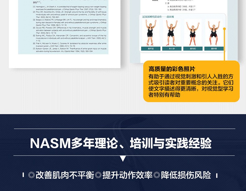 高清彩圖與文字描述相結合,展示針對身體各部位的評估及糾正性訓練技術。