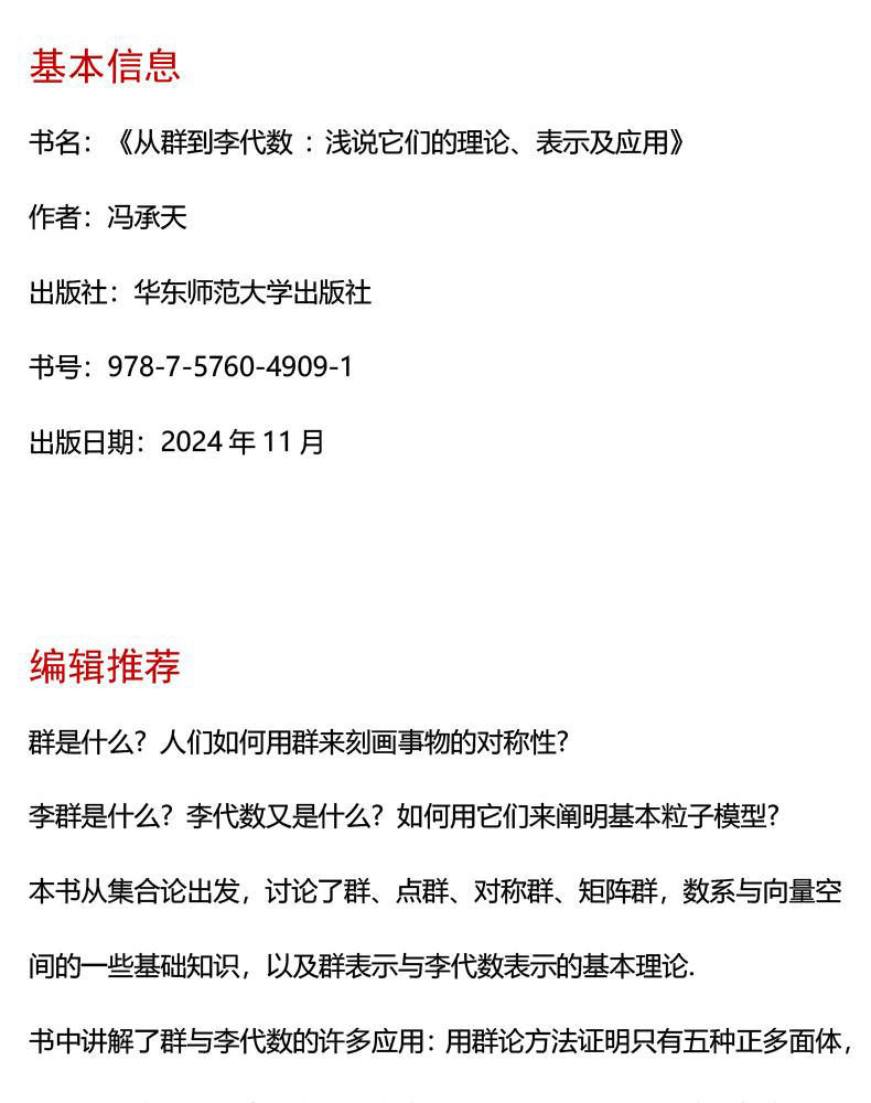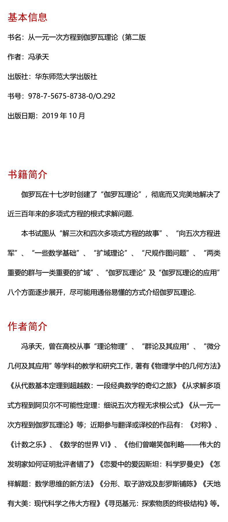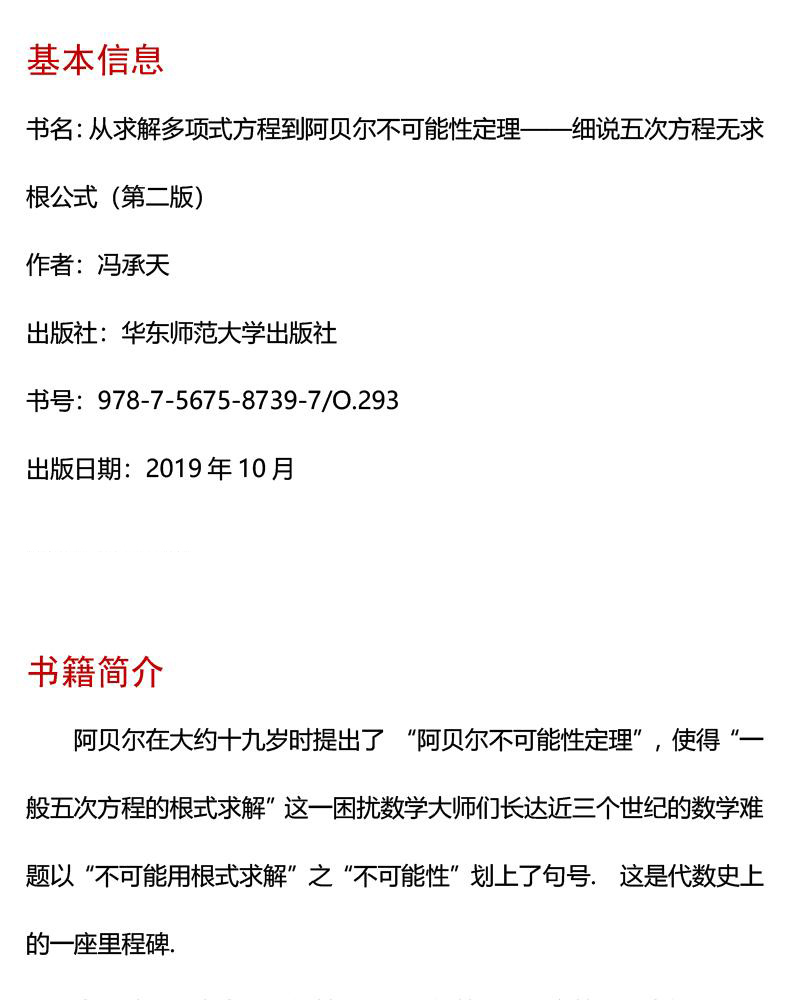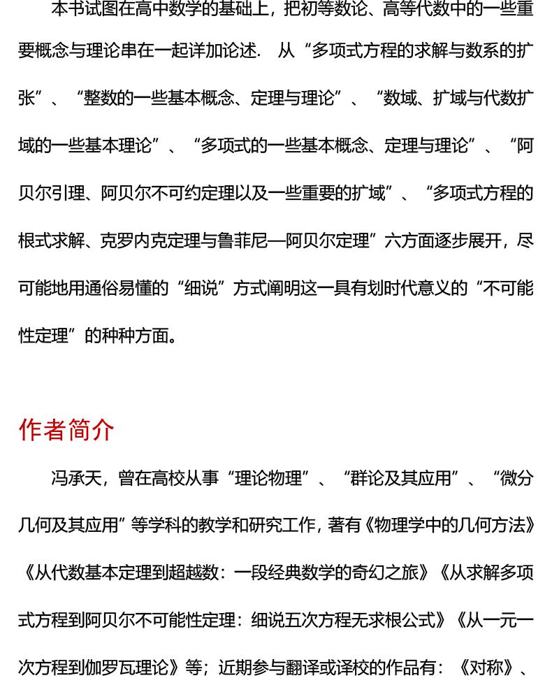 馮承天 原創數學拓展普及類從系列(全套6冊)高等數學啟蒙小叢書 從解多項式方程式到阿貝爾不可能性定理 從群到李代數定理到超越數