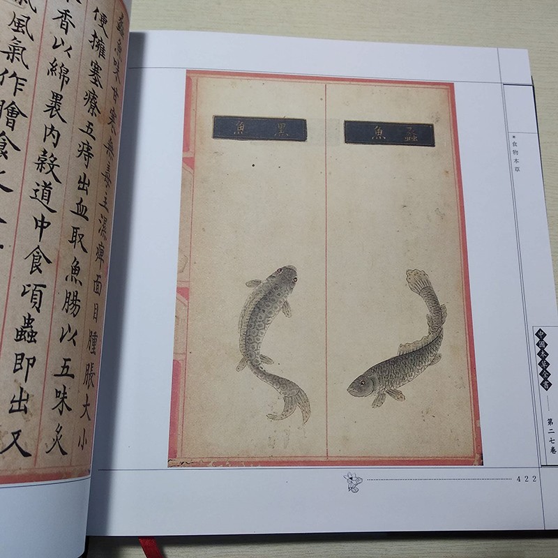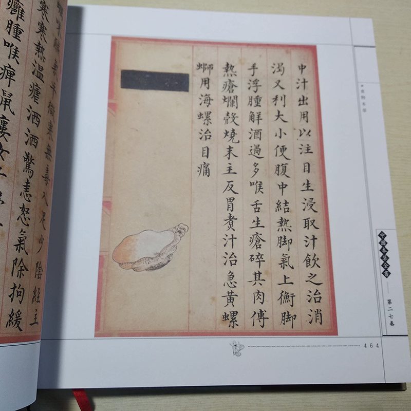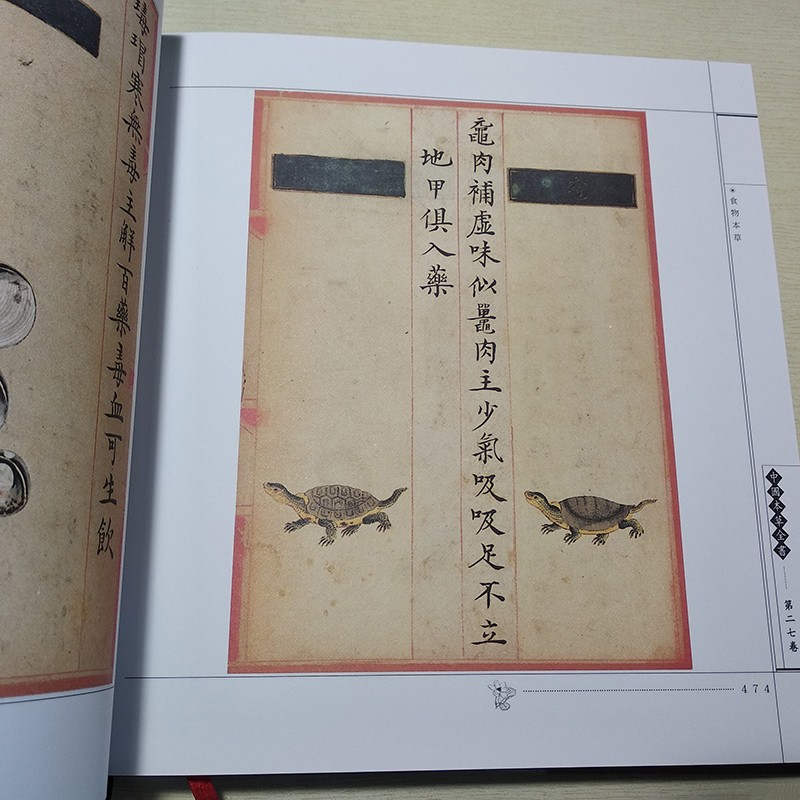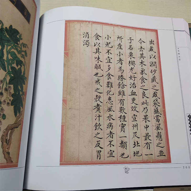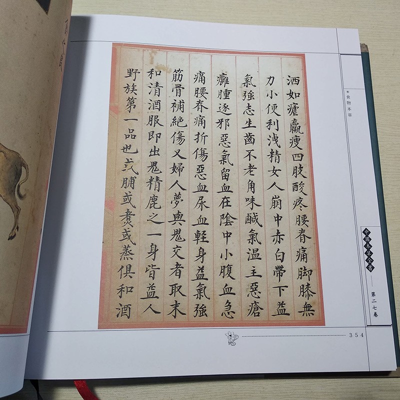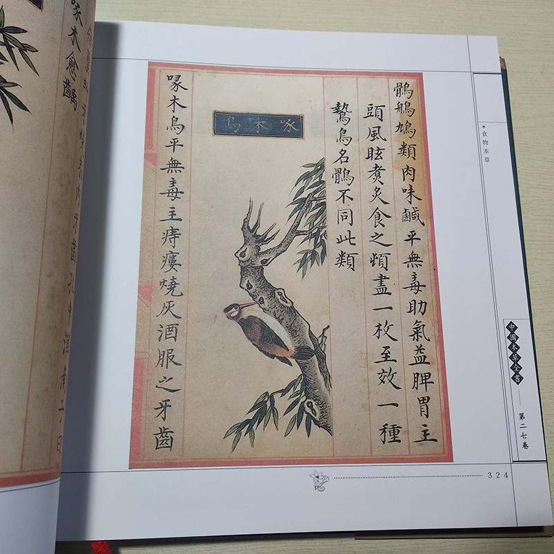 《食物本草》彩繪本,據考證為明朝宮廷寫本 ,乃太醫院奉旨整理撰寫,並由宮廷畫師親自繪製。它因受當時突發事件的影響而未能刊印,此影印本為其首次出版發行,盡現原書原貌,版本極其,且裝幀考察,獨運匠心,中式十二開本,。