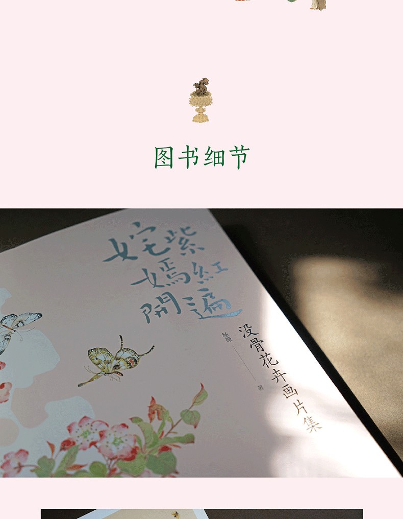 本書以《花間集》的詞作為主題,引出杏花、荷花、竹子、菊花、桂花、蝴蝶等 20 餘種常見動植物,透過詞與動植物的巧妙結合來展現沒骨畫的意境與趣味,並詳細介紹了沒骨畫的創作過程。
