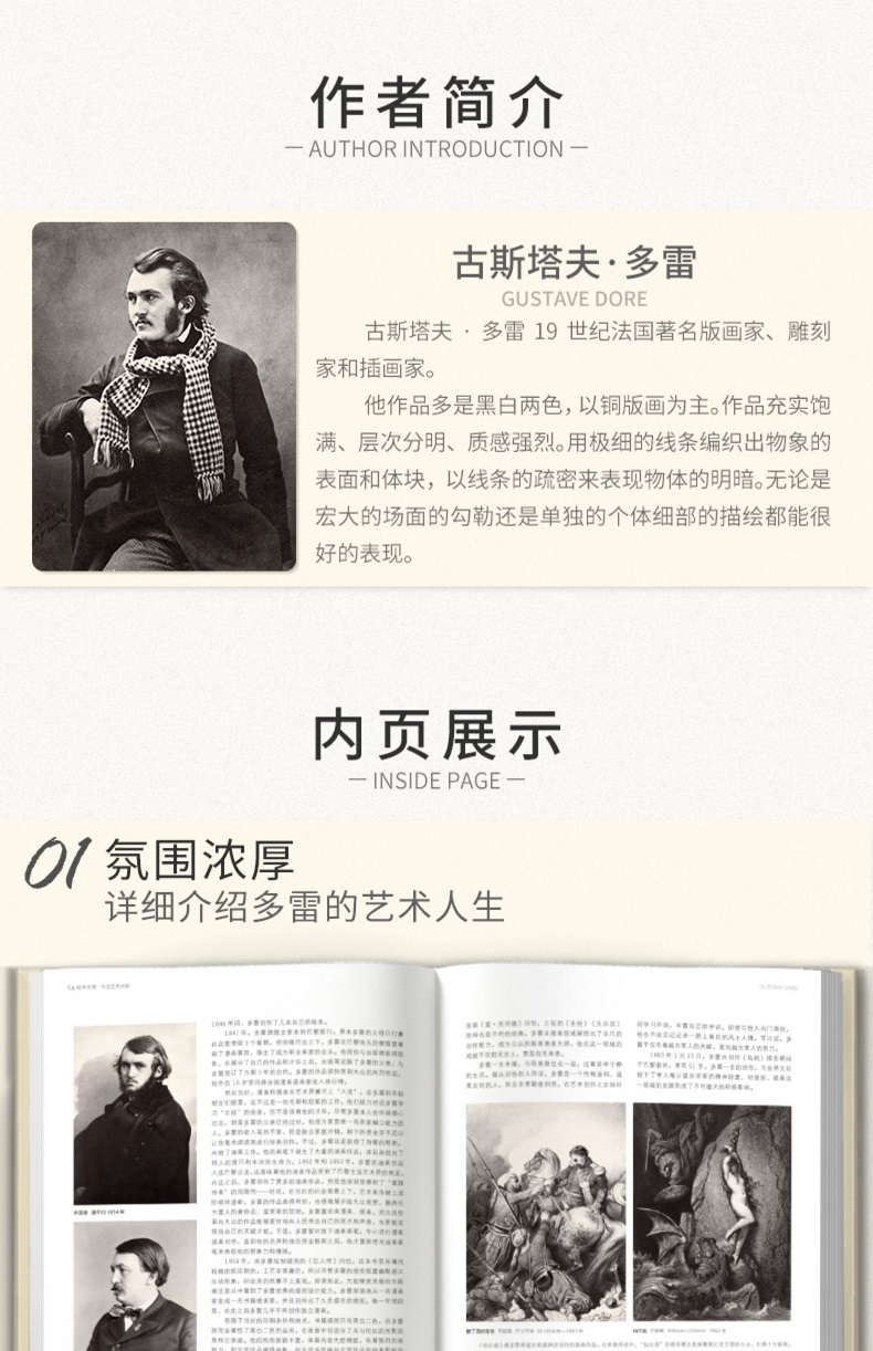 分別來自羅浮宮和法國國家圖書館的兩位法國編輯從多雷的上萬幅插圖作品中精選出那些極其重要、視覺效果甚是強烈、很能代表他藝術風格的作品,兩人分工合作,前者帶讀者徜徉在多雷藝術作品背後的文學幻想和文藝圈八卦裡,後者娓娓娓道來多雷藝術作品背後的文學幻想和文藝圈八卦裡,後者娓娓道來多雷版的高超技製作高超技。讀者會感覺自己站在連結古典和前衛的橋樑之上,一起沉浸在多雷的永恆魅力中吧!