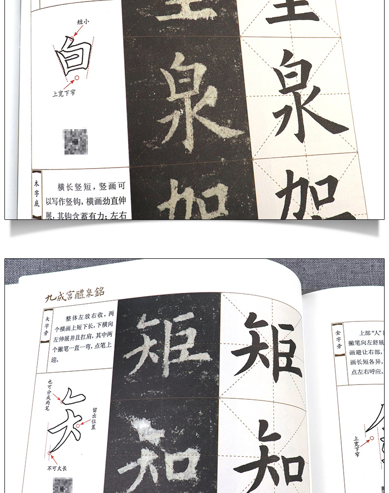 《顏楷入門1+1(二):偏旁部首》中的顏氏楷書是法度森嚴的典範,是眾多書法入門者的首選,在對顏楷的筆法筆劃、偏旁構件、結字規律和變化方式進行學習之後,便可進行集字練習等。 《顏楷入門1+1(二):偏旁部首》將《多寶塔碑》和《顏勤禮碑》的字例進行橫批、對聯、中堂、斗方等多種形式的組合,為習書者提供了學習的樣本,為其日後的楷書創作提供了方向。