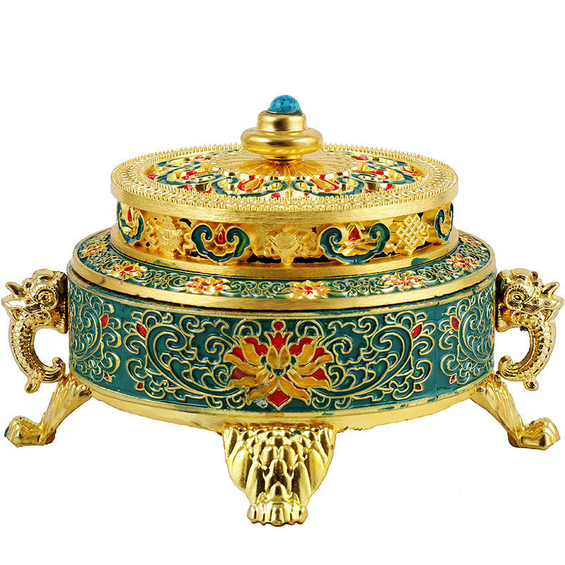 【手工製作】琺瑯禪意爐檀香爐 藏式八吉祥盤香爐