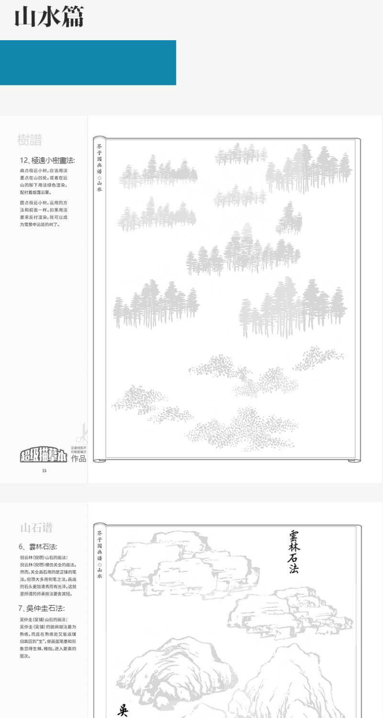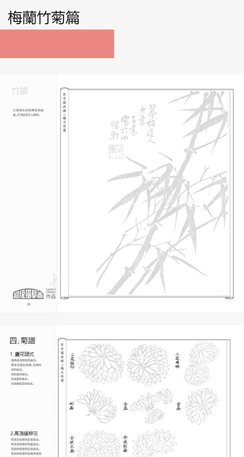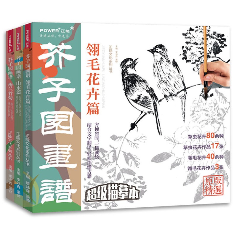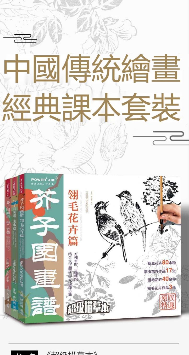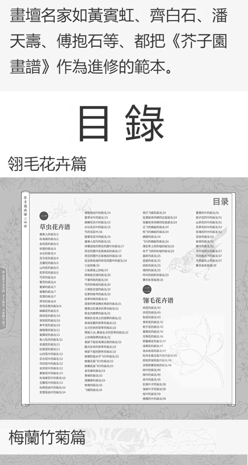芥子園畫譜全集 4冊 山水林樹 翎毛花卉 人物 梅蘭竹菊 工筆白描超級描摹本 中國畫入門臨摹教材