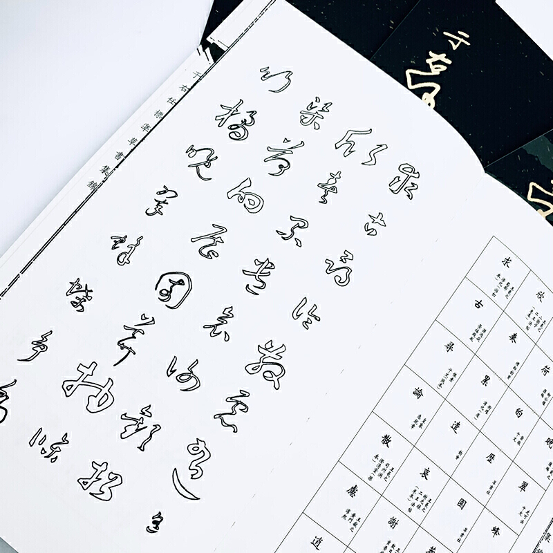 《于右任標準草書集錦》以四個不同版本(由于右任集字或親自執筆)的草書《千字文》進行對照研究,以“易識,易寫、準確,美麗”之四原則為標準,將歷代草書的章法做了一番系統的整理和總結。