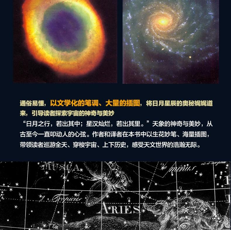 本書是一部天文學科普名著,作者卡米伊·弗拉馬里翁以文學的筆觸將浩渺宇宙的絢爛與神奇展示給廣大讀者。它是迄今為止內容*全、篇幅*大、插圖*多的天文學科普名著,自問世以來,一直受到廣泛歡迎,被譯成十幾種文字,影響了一代又一代讀者,許多人因讀了這本書而愛上天文學,甚至因此從事而天文學研究工作。全書共分七篇,前六篇全方位描述和介紹了地球,月亮,太陽,行星世界,彗星、流星、隕星,恆星宇宙;第七篇簡單介紹了各種天文儀器,讓讀者了解天文工作者所使用的工具和他們如何依靠這些精密儀器獲得驚人發現。圖文並茂,引人入勝,配有大量的圖片資料。譯文流暢,通俗易懂,並保持了原有的文學風格;此外,譯者又根據近年來天文學的新發展作了增補和修訂,使全書內容翔實而新穎。此次修訂版針對前版的一些不足進行了修訂,替換插圖,改排彩插,使其更具學術價值和科普價值。