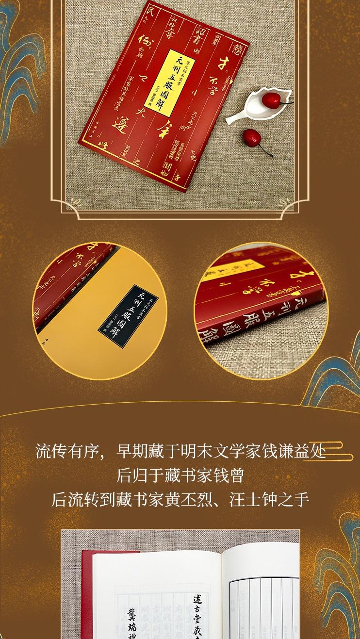 《五服圖解》,元龔端禮撰,元泰定元年(三三四)杭州路儒學刻本。每半頁十四行,行二十五字,白口,左右雙邊。一冊,有插圖,書中有殘頁。