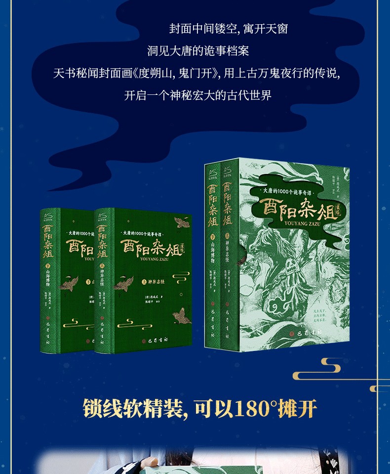 【鎖線精裝函套】酉陽雜俎 神異志怪+山海博物(上下共2冊)唐朝詭事錄靈感之書 聊齋誌異百科全書 附贈藏書票+書籤