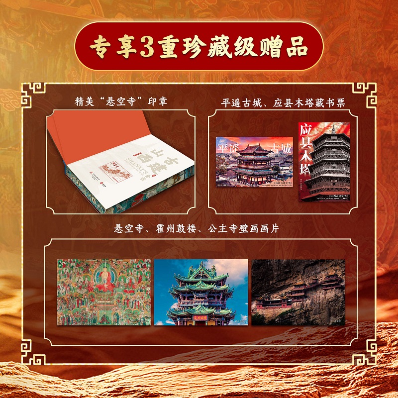 【精裝8開 刷邊禮盒版】山西古建全書 隨書附贈 懸空寺印章+應縣木塔藏書票+壁畫畫片