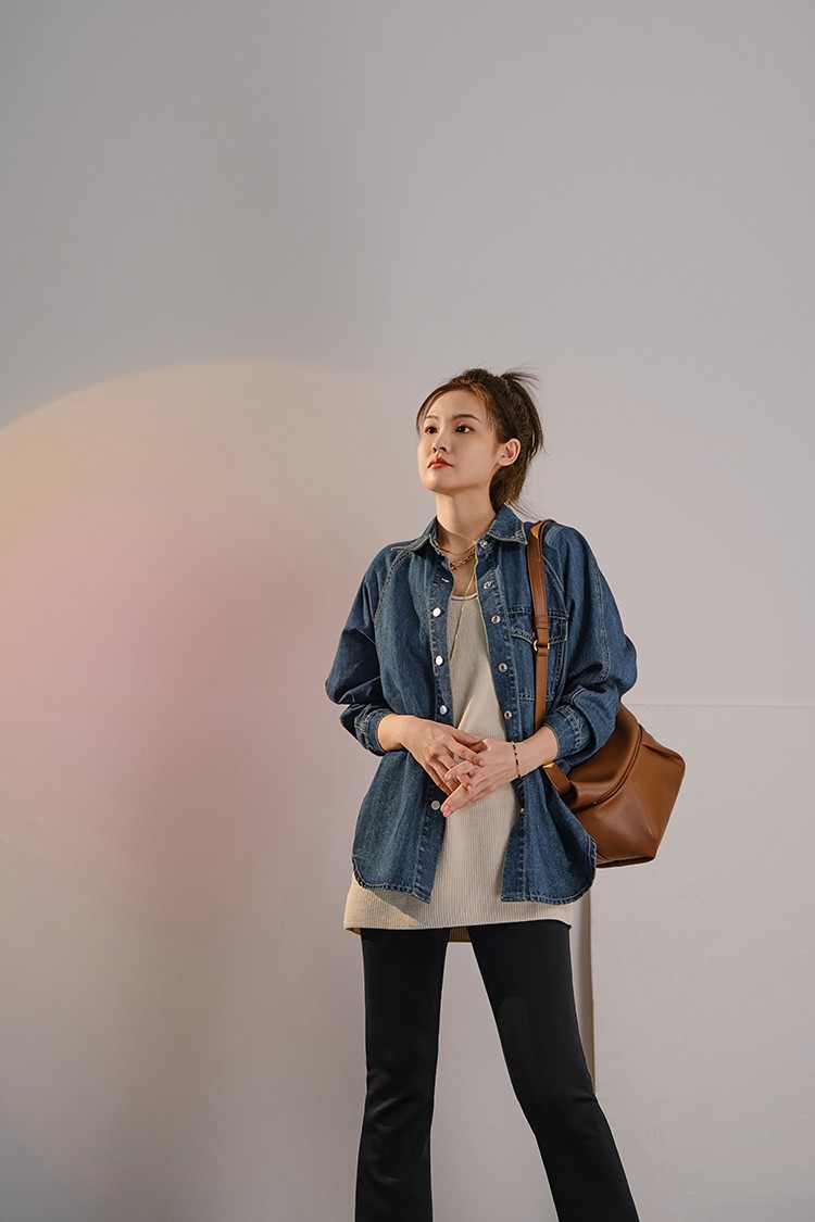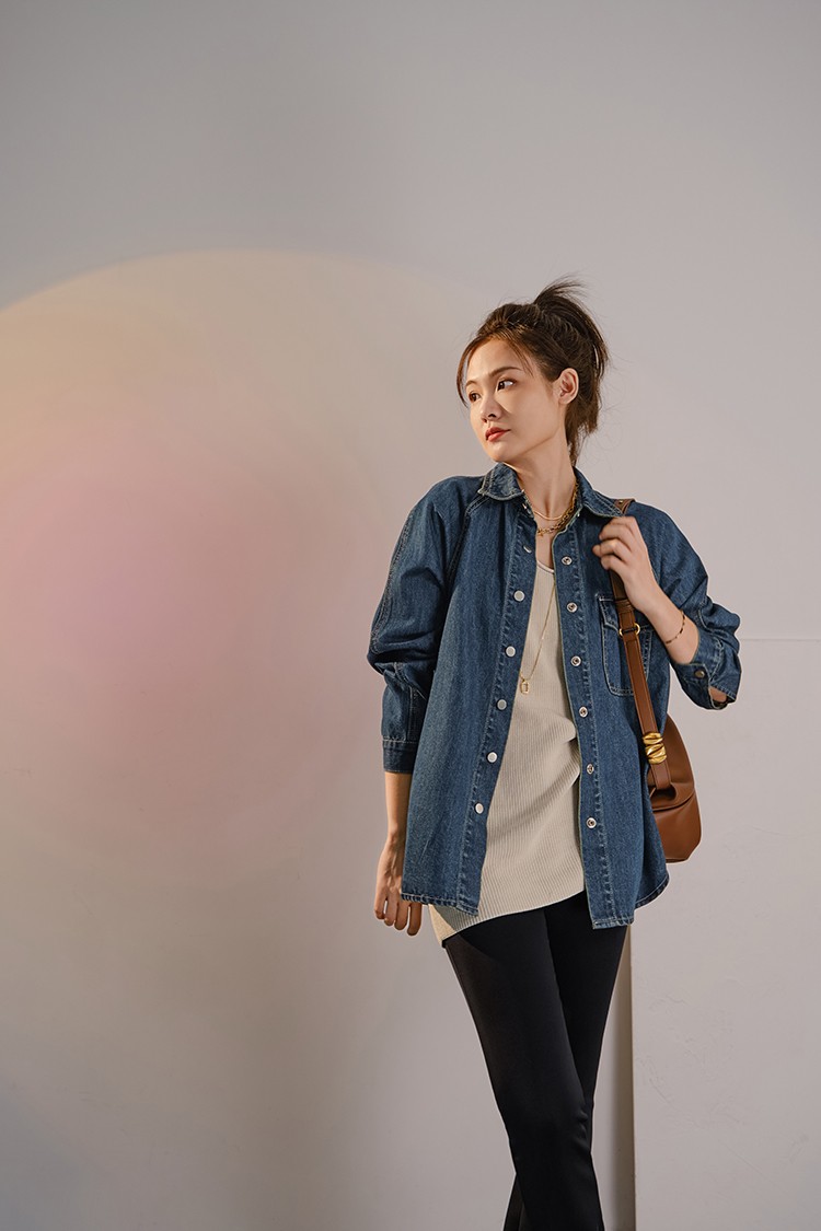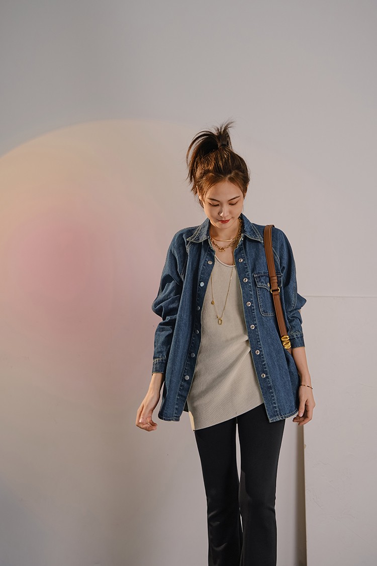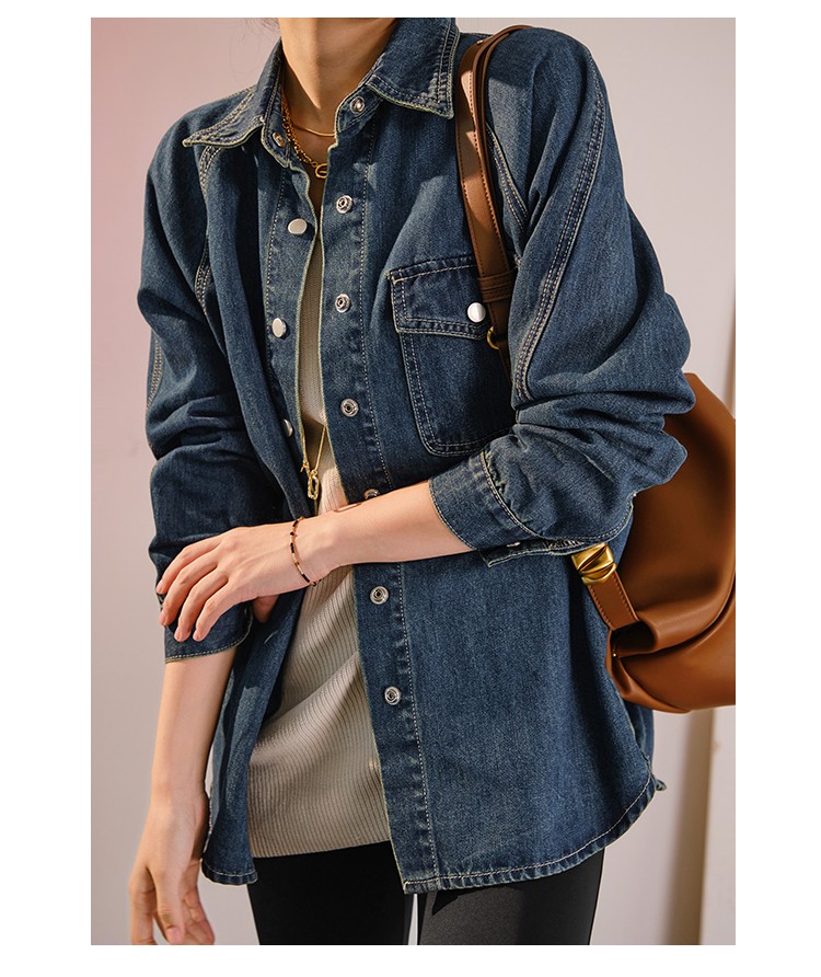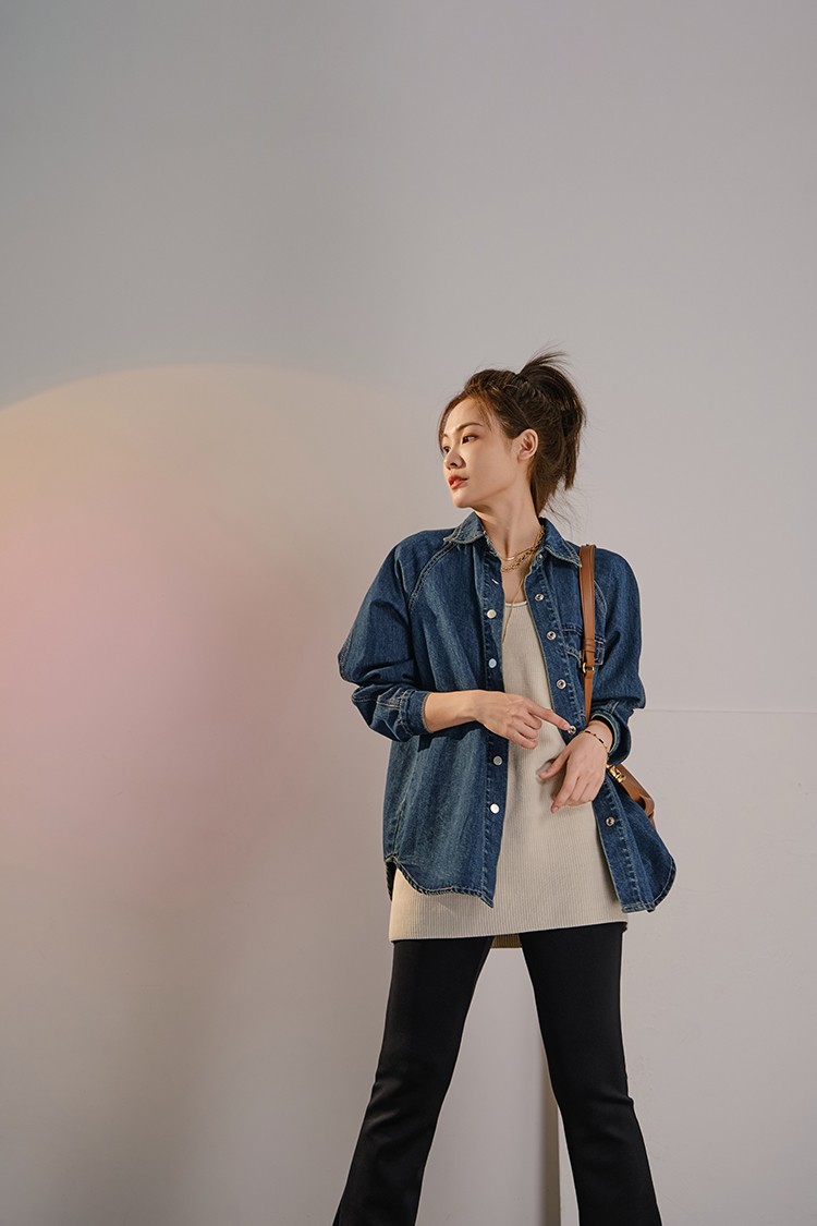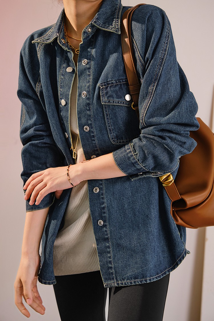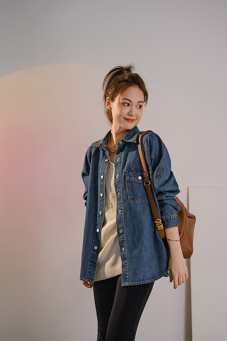 摩登口袋牛仔襯衫 百搭長袖襯衣夾克短外套春