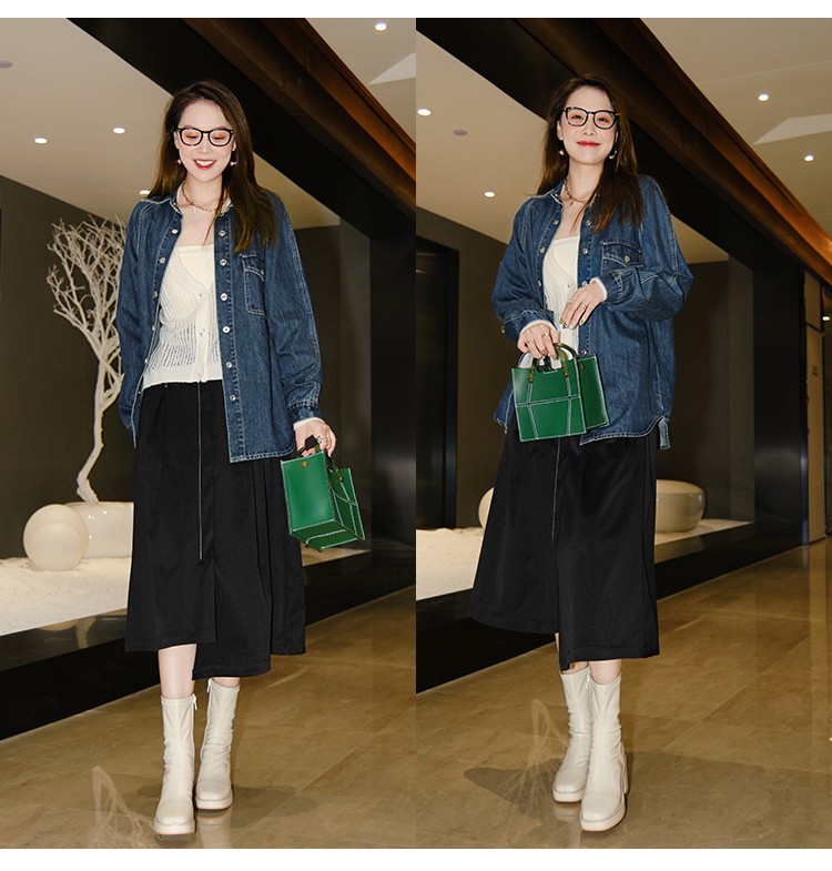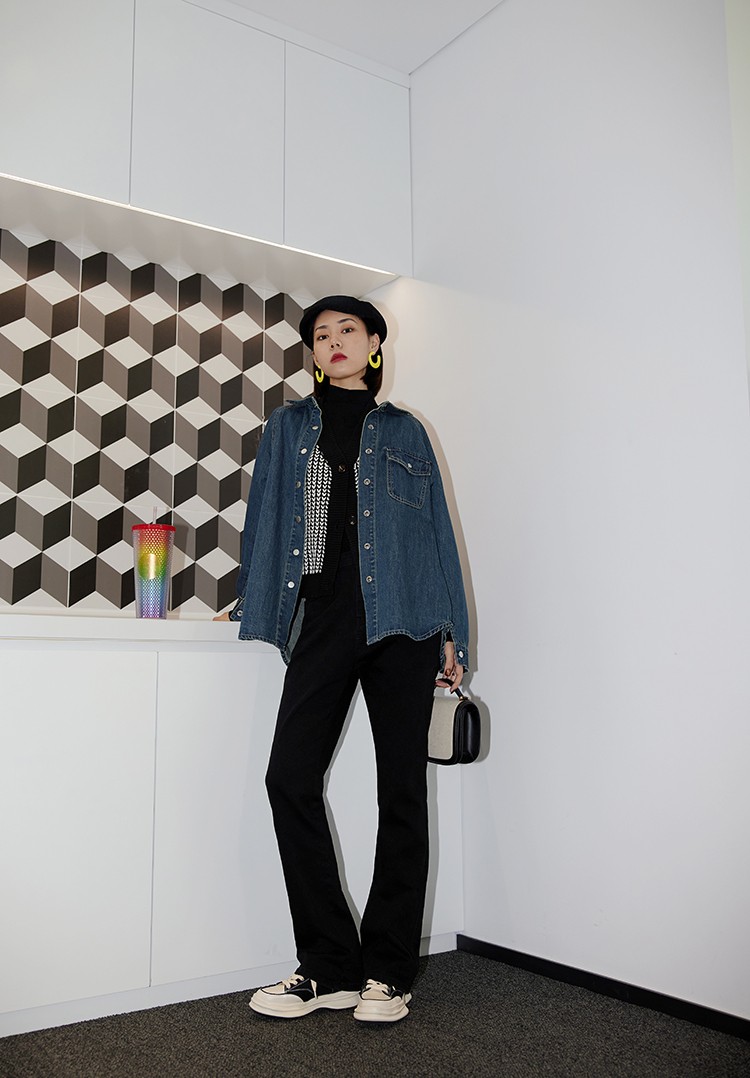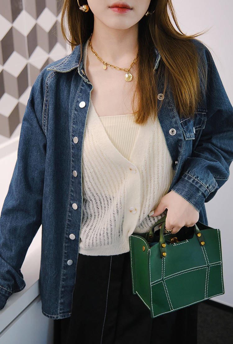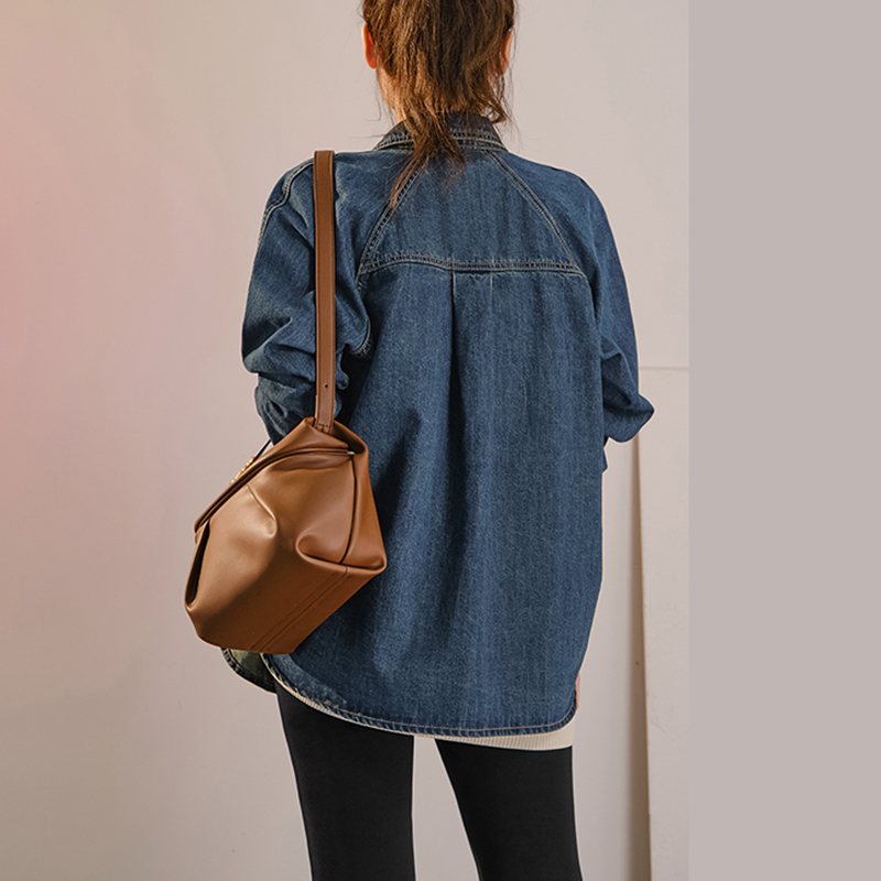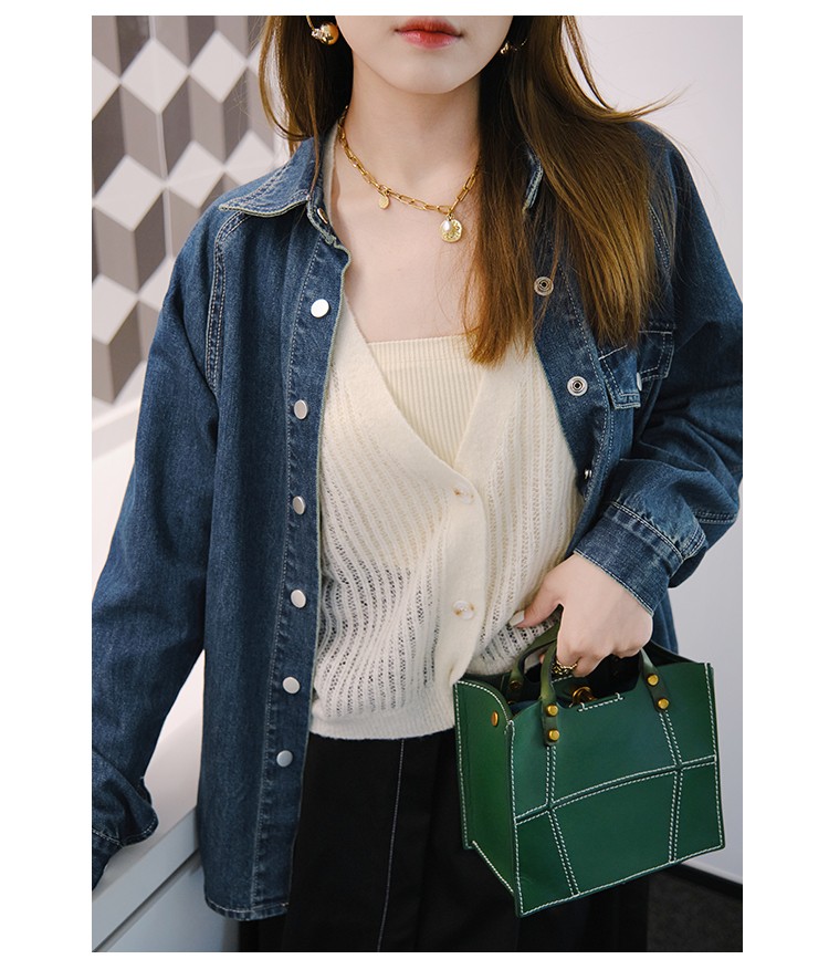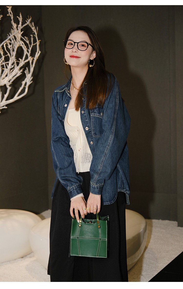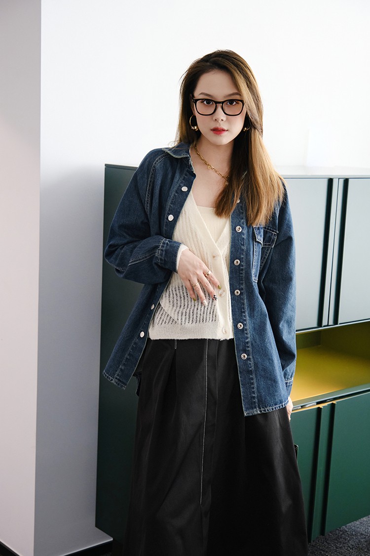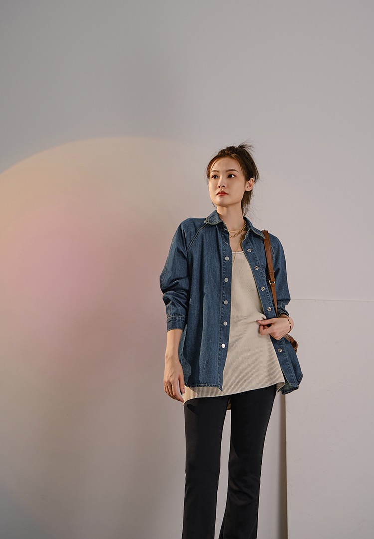 摩登口袋牛仔襯衫 百搭長袖襯衣夾克短外套春