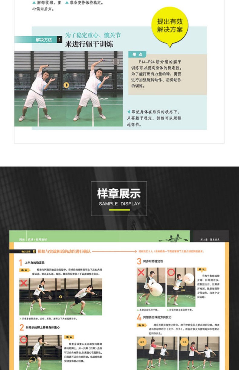 本書首先對羽毛球運動中應關注和提高的身體功能及其訓練方法進行了介紹。接著,本書通過500餘幅動作連拍圖,對發球、擊球、步法、接球等多種基本技術的正確姿勢和技術要點進行了分析,並在此基礎上對支撐各技術動作的特定身體功能的訓練改善方法進行了講解。此外,本書對12類羽毛球愛好者的常見煩惱的形成原因和解決方法進行了詳細解析,旨在幫助練習者有針對性地、高效地提升球技。