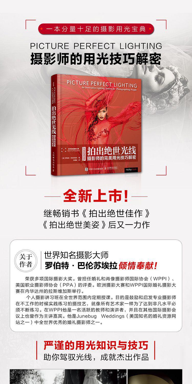 光線不是虛無的,掌握技巧,你就能駕馭攝影的DNA 繼**書《拍出絕世佳作》《拍出絕世美姿》後又一力作 作者精華總結“光的運作原理與光的五大特性” 探索十大環境光元素以及他們在攝影實踐中的運用 詳細講解反光板,柔光屏等輔助用光手段的使用技巧 極致詳盡地講述如何用閃光燈創造神奇光線效果 解構光的視覺構思,詳解精選的典型用光案例