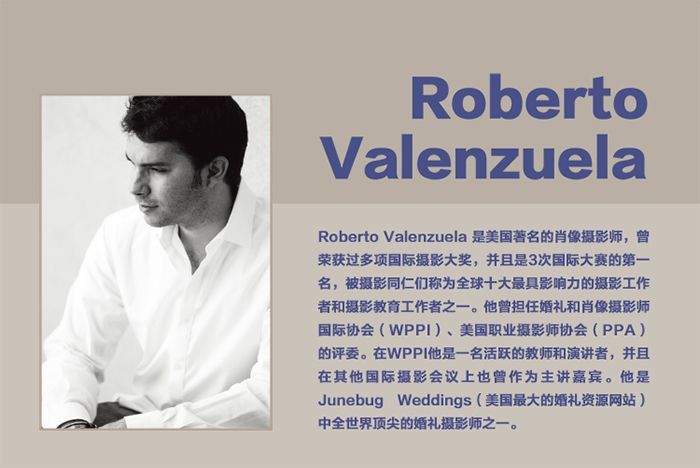 Roberto Valenzuela 是一名在美國加州比弗利山莊工作的婚禮和藝術攝影師。他的教育背景是經濟學和市場學。然而,他還是一名具有10 年工作經驗的古典音樂吉他手,就像他演奏樂器一樣,這讓他具備一種獨特的觀點,運用同樣的實踐技法來掌控攝影。
