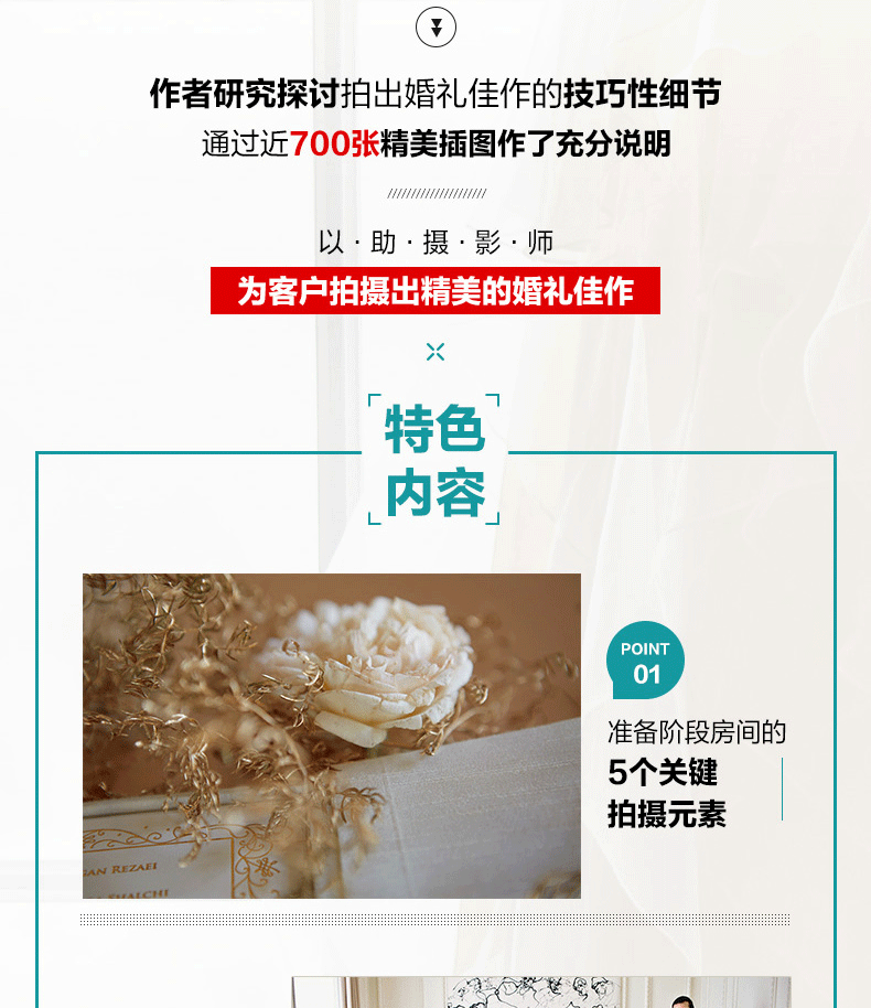 《拍出絕世佳作——***攝影師私藏技法解密》由***攝影師傾力撰寫,為攝影愛好者解決*棘手的攝影問題。 《拍出絕世佳作——***攝影師私藏技法解密》把攝影實踐分為三個部分並進行了分析和講解,即掌控拍攝場景、設計人物擺姿和實施拍攝過程。作者提供了一套完整的拍攝方法和實踐體系,通過大量現場實例,講解並重現了攝影作品的拍攝過程;通過對比和分析相關作品的優缺點,使讀者真正領悟到拍攝技術中的精髓。書中還介紹了作者自己的大量攝影心得,以及諸多拍攝練習方法,具有極好的指導和借鑒作用。