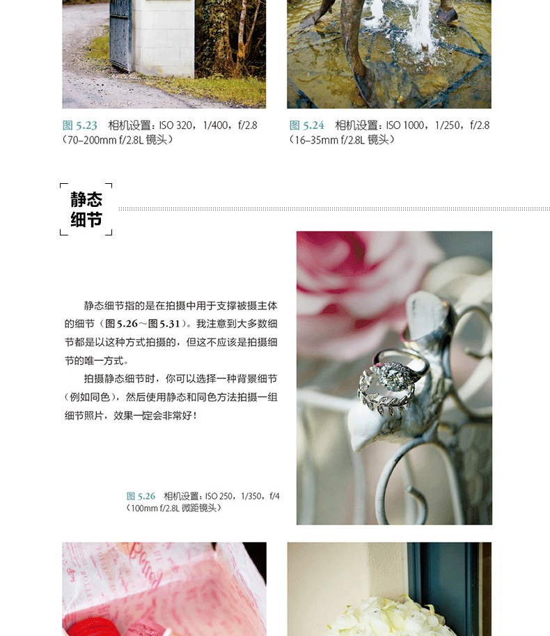 《拍出絕世佳作——****攝影師私藏技法解密》由****攝影師傾力撰寫,為攝影愛好者解決*棘手的攝影問題。 《拍出絕世佳作——****攝影師私藏技法解密》把攝影實踐分為三個部分並進行了分析和講解,即掌控拍攝場景、設計人物擺姿和實施拍攝過程。作者提供了一套完整的拍攝方法和實踐體系,通過大量現場實例,講解並重現了攝影作品的拍攝過程;通過對比和分析相關作品的優缺點,使讀者真正領悟到拍攝技術中的精髓。 《拍出絕世佳作——****攝影師私藏技法解密》一書中還介紹了作者自己的大量攝影心得,以及諸多拍攝練習方法,具有極好的指導和借鑒作用。