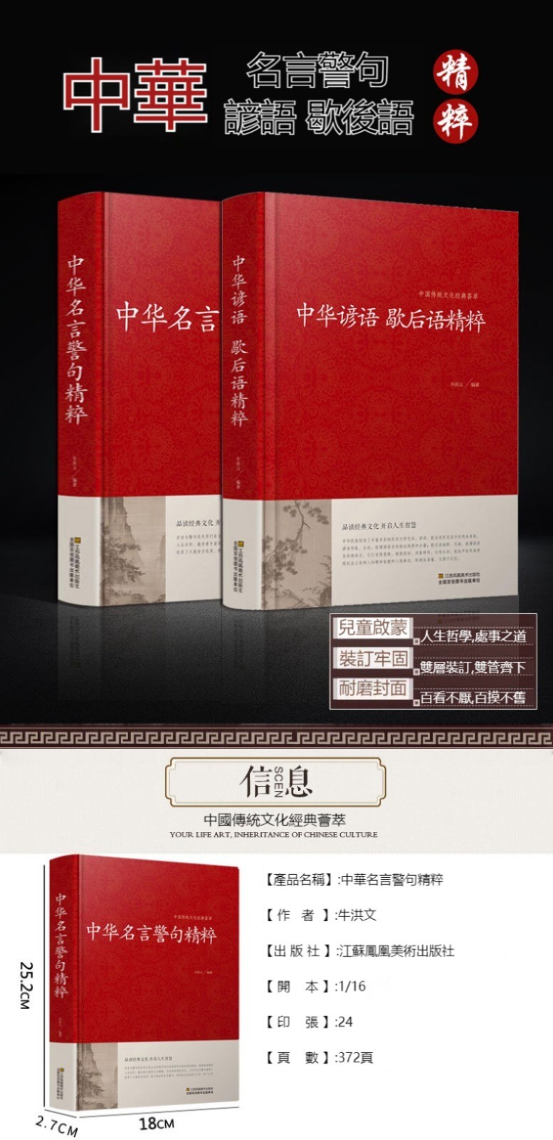 【中華名言警句精粹+中華諺語 歇後語精粹】2冊 人生處事,知識智慧,創業財富,哲學典故,圖文並茂,內容簡單易讀(免運費,貨到付款)