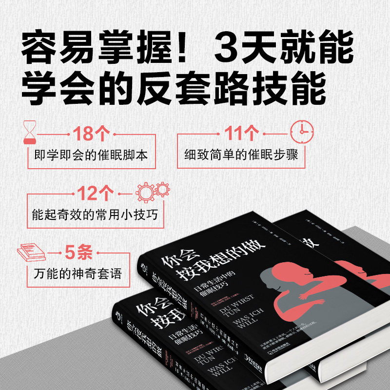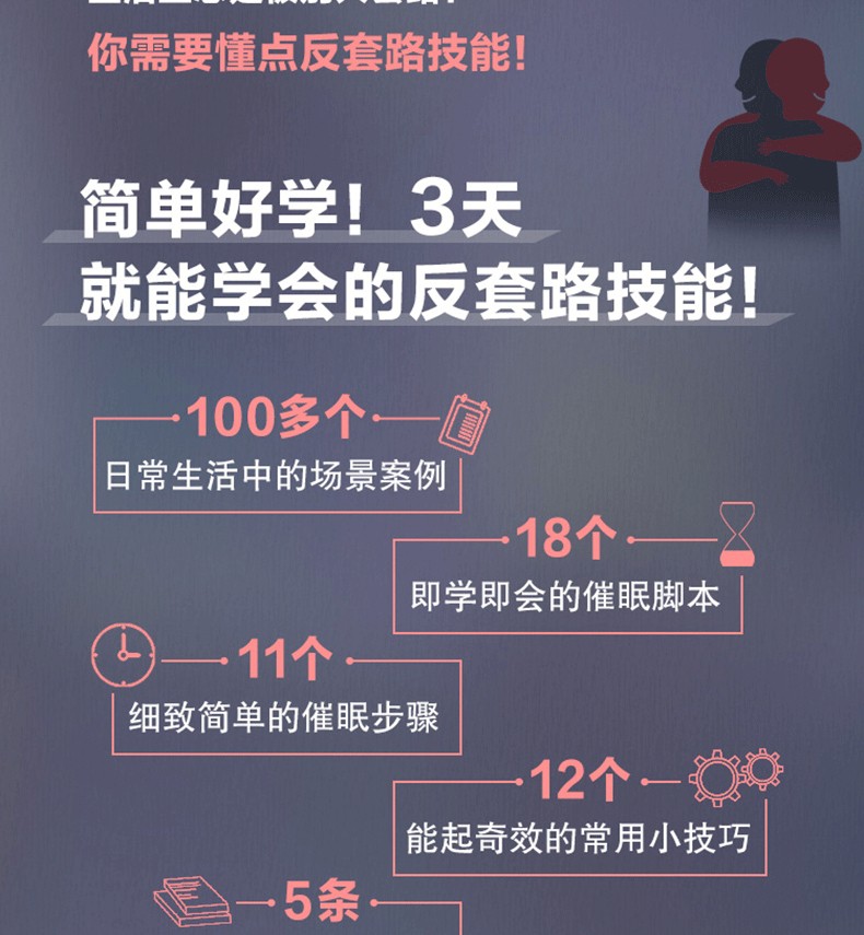3、好學會! 3天就能掌握催眠技巧。 100多個日常生活案例,18個即學即用的催眠腳本,11個催眠步驟。手把手教你繞開生活所有的“坑”,成功get“反套路”技能!