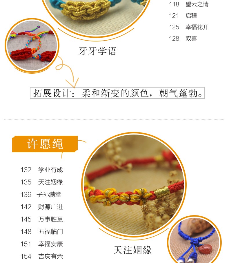 27種繩結基本編法+43款時尚手繩案例+64款拓展手繩案例;每個基本編法、手繩案例都有配套視頻,掃二維碼看視頻;全彩圖解,一步一圖,一看就懂,一學就會。