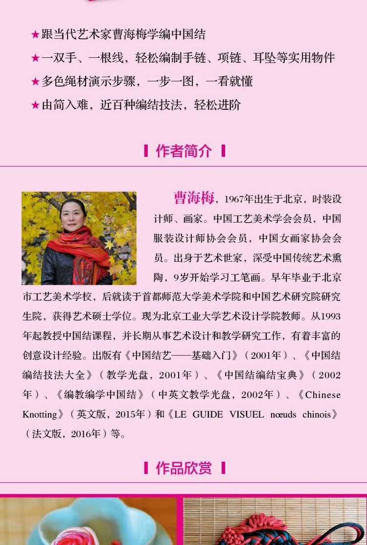 劉梅,資深編繩藝人,擅長自主設計手繩款式。致力於傳播、推廣編繩這一富有魅力的手工藝術。從業二十餘載,帶出來的徒弟數以百計。