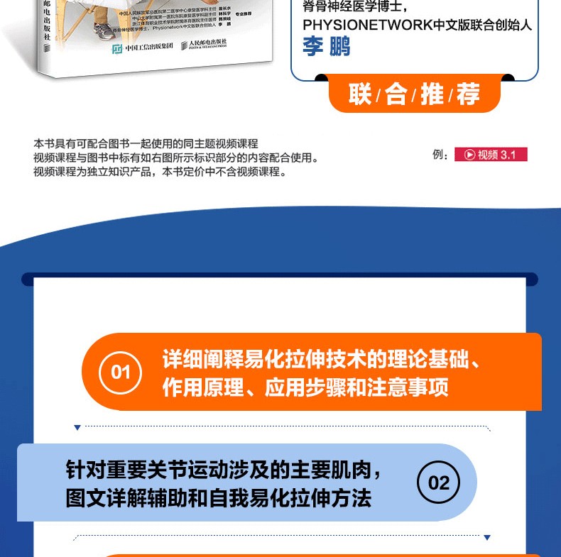 內容簡介易化拉伸主要分為2個部分,第1部分對易化拉伸技術的理論基礎和作用原理進行了闡述,第2部分採用真人示範圖解的形式,對身體各部位的主要肌肉的自我拉伸及輔助拉伸技術進行了講解,並提供了8套針對不同運動專項和人群的拉伸方案,旨在幫助人們通過拉伸預防損傷、提升運動表現和生活品質。