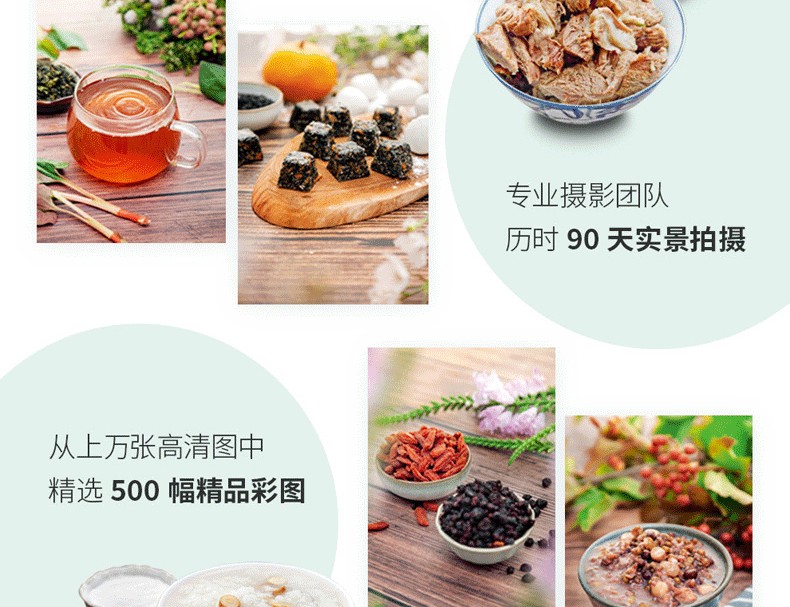 專業攝影團隊歷時90天實景拍攝,從上萬張高清圖中精選500幅精品彩圖。食方的原料、做法、成品,每個細節逐一真實呈現,提供詳盡周到的操作指引和賞心悅目的視覺體驗。