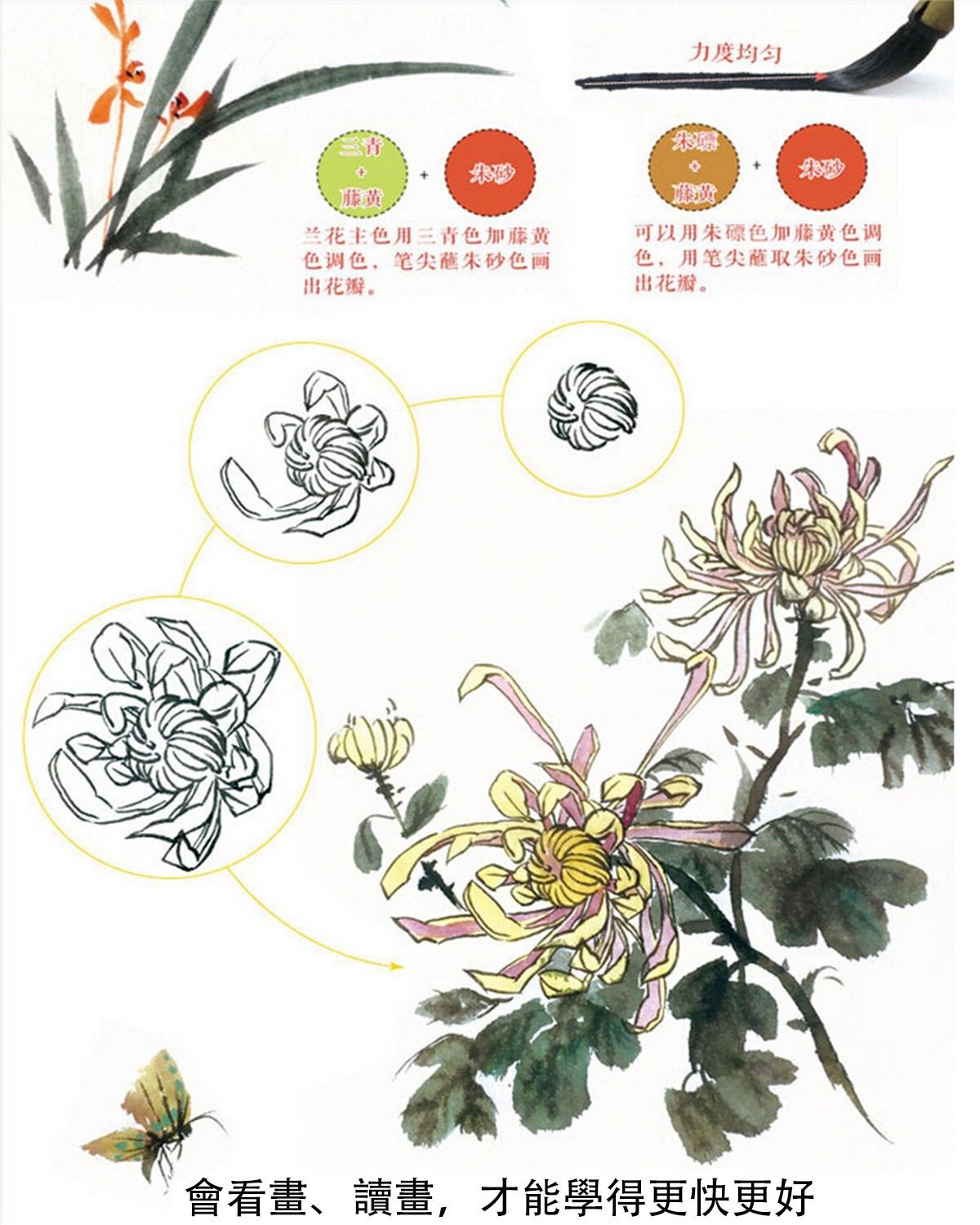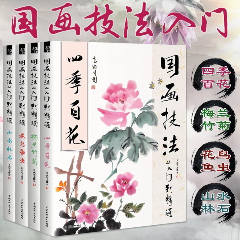 【國畫技法教程全套4冊】從入門到精通,十大題材、兩大領域,分步講解,輕鬆掌握花鳥魚虫/梅蘭竹菊/山水石林/四季百花繪畫技巧