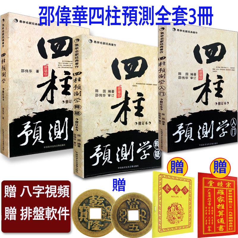 正版四柱預測學入門 釋疑 三冊 八字命理命運周易預測學六爻入門子平初級(贈八字視頻+3個乾隆通寶+老黃歷)