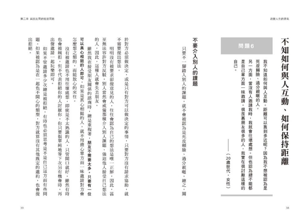 作者站在阿德勒心理學的觀點,一一點出困擾我們人生的生活瑣事中的癥結點,並提供改善的方法,點亮讀者面對人生的勇氣。