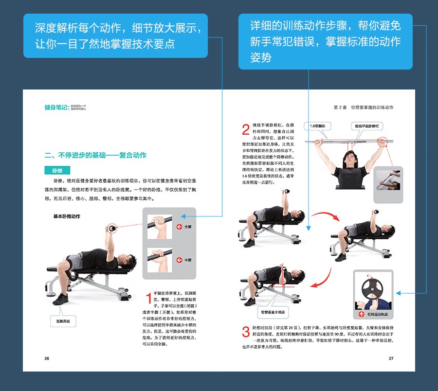 《健身筆記(如何成為一個身材有料的人)》是由知乎人氣健身科普作者叔貴寫給新手的健身入門指南。面對互聯網上大量的健身信息,剛開始健身的你是否感到迷茫――作為健身“小白”,應該如何開始鍛煉,從哪裡入手?堅持運動了很久,為什麼一直瘦不下來? “三分練,七分吃”是真的嗎?拉伸到底能不能瘦小腿……這些常常令新手感到困惑的問題,本書都給出了解答。此外,《健身筆記(如何成為一個身材有料的人)》還提供了適合新手的身體各部位的訓練動作,以及適用於家庭、健身房和辦公室的拉伸、減脂、增肌等訓練計劃,並對日常的營養策略做了詳細闡釋,教你如何根據自身的熱量需求安排健康的一日三餐。