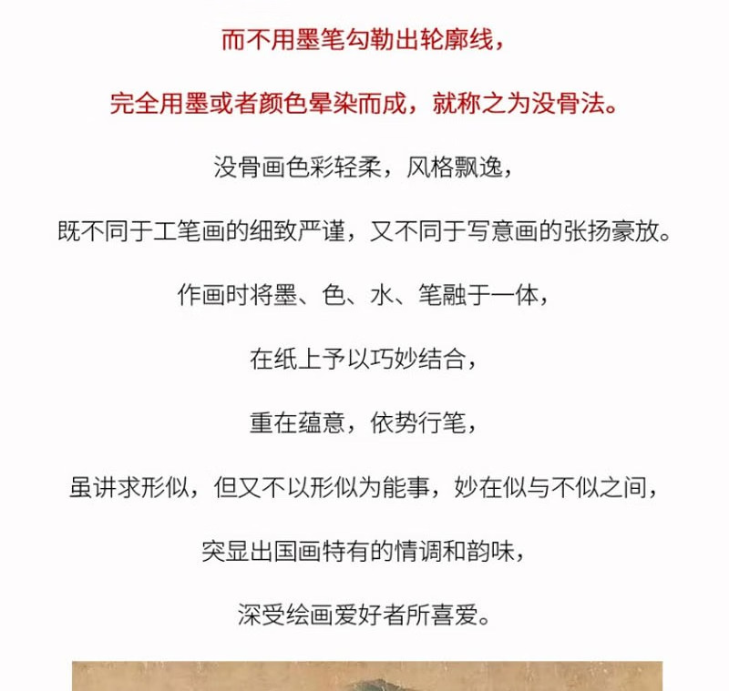 《中國畫傳統技法教程·沒骨花卉日課》是針對國畫初學者所策劃的一本沒骨花鳥畫技法書。 全書框架分概述、沒骨技法解析、草本花卉、木本花卉、禽鳥、草蟲及教學課稿七個部分。 其中沒骨技法解析、草本花卉、木本花卉、禽鳥、草蟲屬於技法講解部分,技法講解部分精選50餘種花卉,10種禽鳥及10種草蟲,並對每一種內容進行詳細的講解 。 每種內容的講解分花鳥介紹、相關畫稿、相關作品、分步驟講解及歷代沒骨花鳥名品賞析五部分。 教學課稿部分為技法講解部分相對應的畫稿及作品的原大排列,更方便讀者檢索、臨摹、學習。