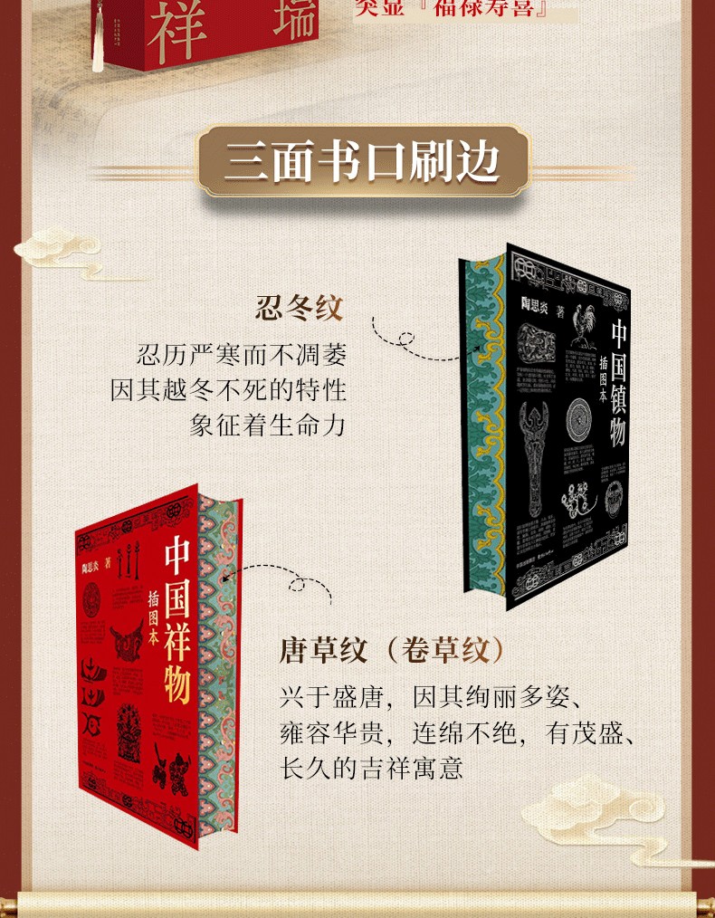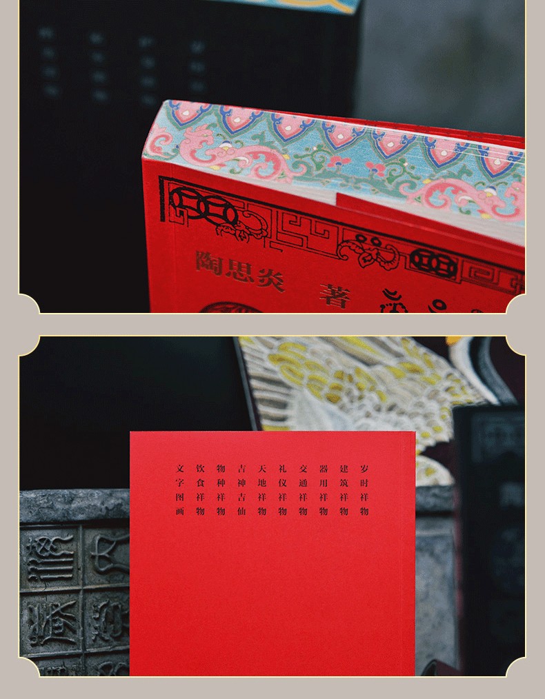 本書內含:歲時祥物、建築祥物、器用祥物、交通祥物、禮儀祥物、天地祥物、吉神吉仙、物種祥物、飲食祥物、文字圖畫。引證了大量的有趣實例,並做出了嚴謹的闡釋。