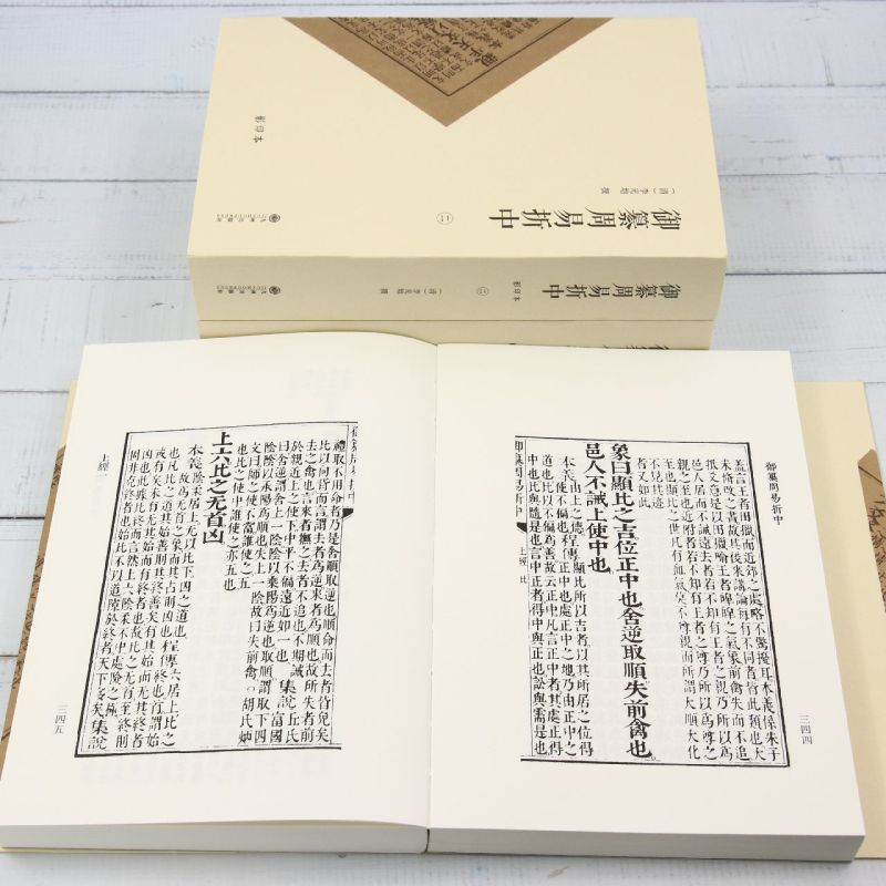 《御纂周易折中》乃「御纂七經」之第一部,由康熙皇帝下詔編撰,文淵閣大學士李光地總裁修訂,四十九名翰林進士等參與編撰,輯錄二百一十八位易學名家之說,上自漢晉,下達元明,使二千年易見道源皆可見道源皆可見。本書作為清代官方易學的集大成之作,自問世後便作為士子讀易的欽定教科書而頒賜各級學校,流傳甚廣。