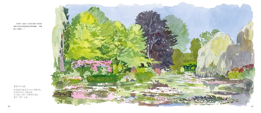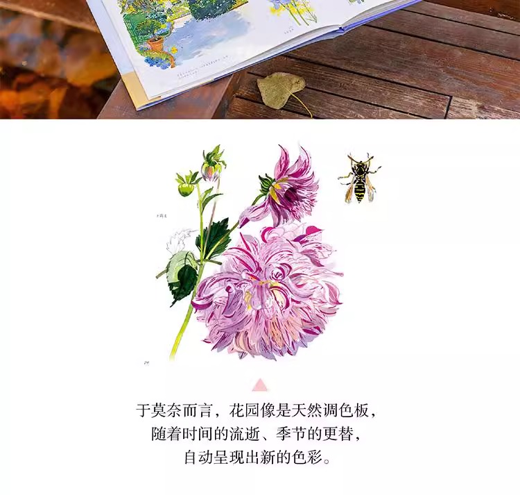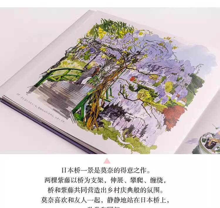本書是一本人文主題的水彩畫集,用圖文並茂的方式為大家介紹了莫內親自設計、精心打造、視為珍寶的花園。莫內的花園分為花園和水園兩部分,花園名為“諾曼底園”,種植著他鍾愛的各種花草,四季花開不斷;水園則是一個曲徑通幽被垂柳環繞,開滿睡蓮的人工湖。這裡為莫內帶來了心靈的慰藉和創作靈感,促使他完成了《睡蓮》《日本橋》等系列傳世名作。本書以圖文並茂的形式帶領讀者走進畫家、園藝家莫內的繽紛世界,探訪這片令人心馳神往的世外桃源。