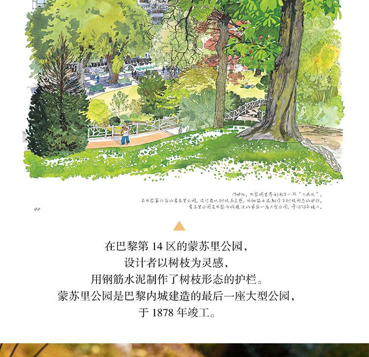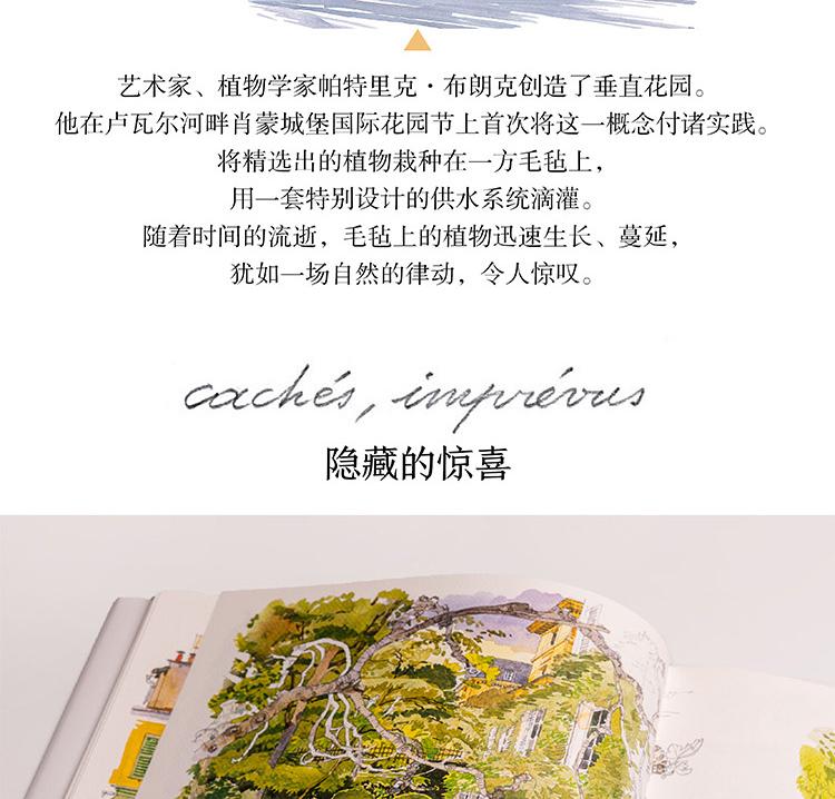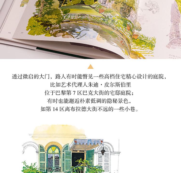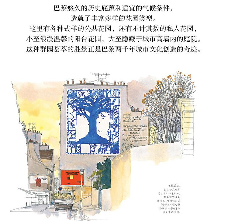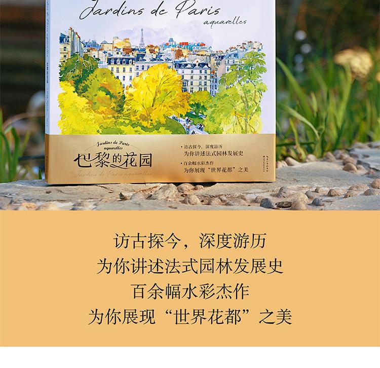 本書是一本人文主題的水彩畫集,用圖文並茂的方式為大家介紹了被譽為「世界花都」的巴黎里的各式花園,它們有的小巧迷人,有的宏大華麗;有的聲名遠播,有的鮮為人知,如:海明威去玫瑰園的盧森堡公園,巴黎的賞櫻地——蘇萊森鎮公園,世界的玫瑰堡花園,當然還有法蘭西的明珠——凡爾賽的花園……本書用百餘幅精美的水彩畫作展現了巴黎花園的四季美景;用詳細的文字講述了各式花園的設計理念、呈現特點、文化寓意以及園中種植的奇珍異草和與花園相關的歷史故事,充分展現了巴黎之木、寓意以及園中種植的奇珍。