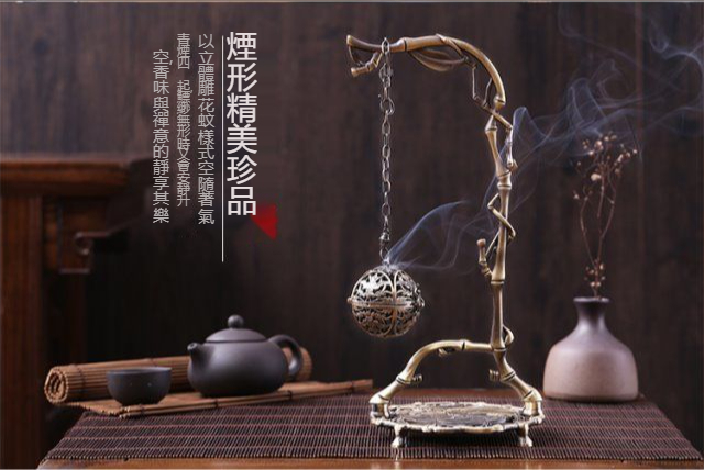 古風倒流熏香爐鏤空懸掛式檀沉香吊爐(青銅)