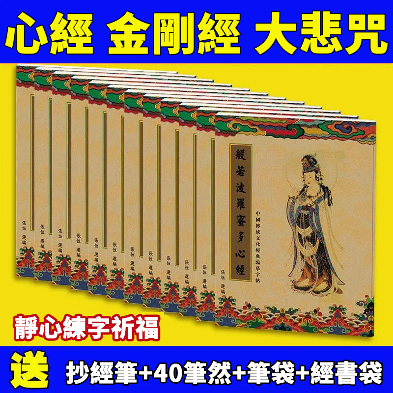 手抄佛經8本 每天抄寫經文,積德行善,結佛緣,旺運勢!比吃齋還要夯100倍!堅持「手抄經」功德無量! (贈送抄經筆,筆芯*40,筆袋,經書袋)