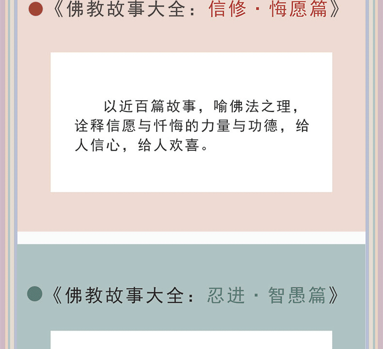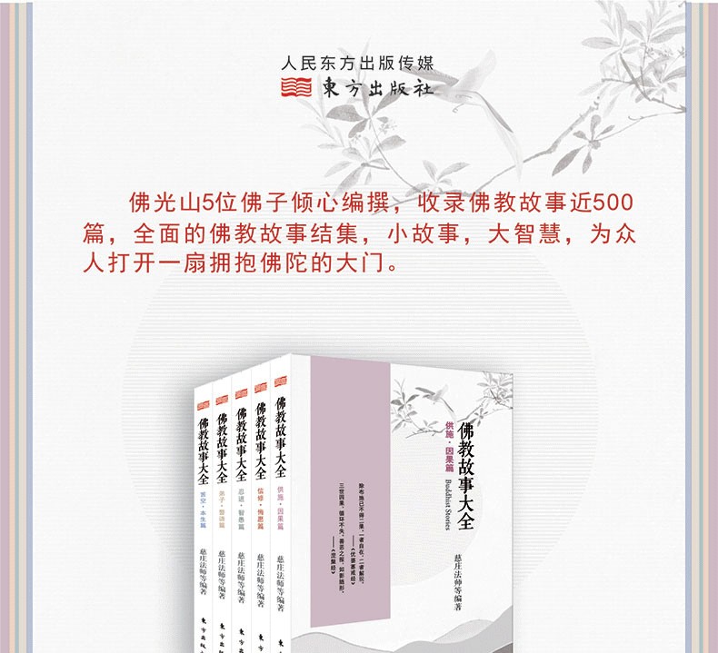 《佛教故事大全》是全面佛教故事的結集,收錄近五百篇佛教故事,台灣佛光山5位佛子傾心編撰。
