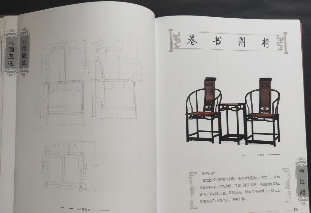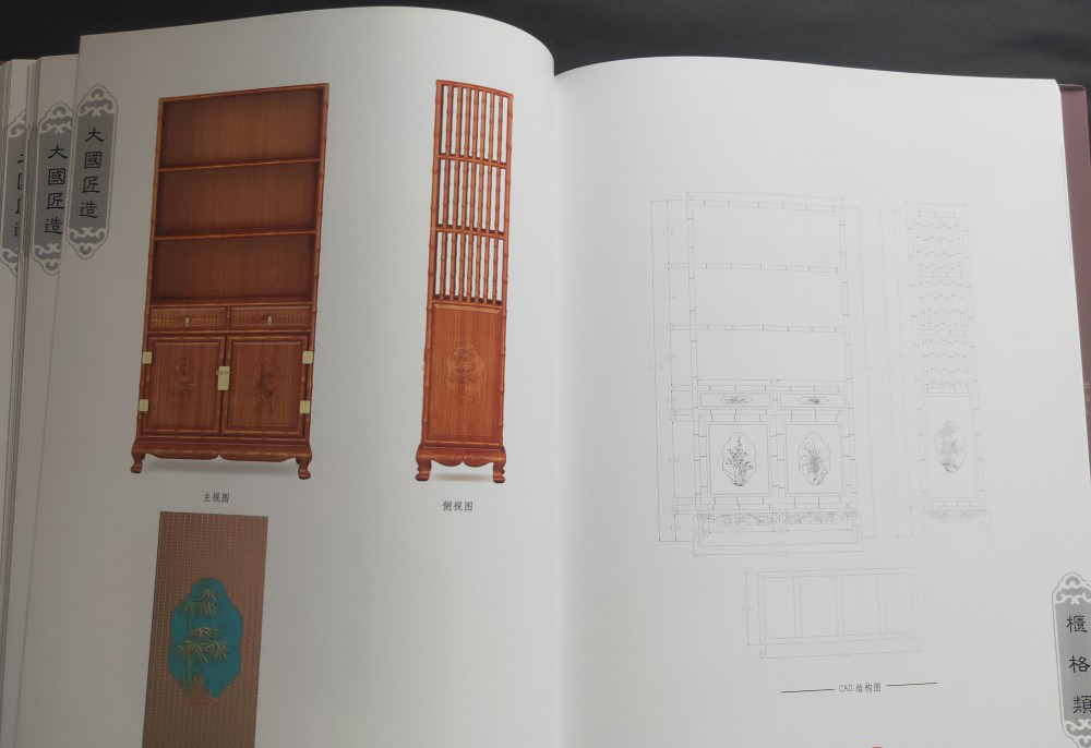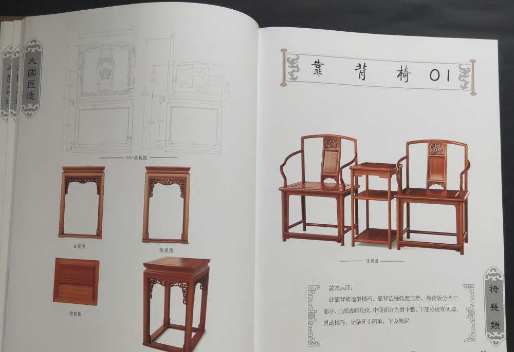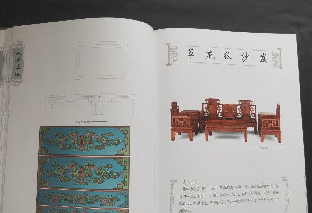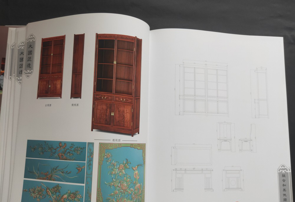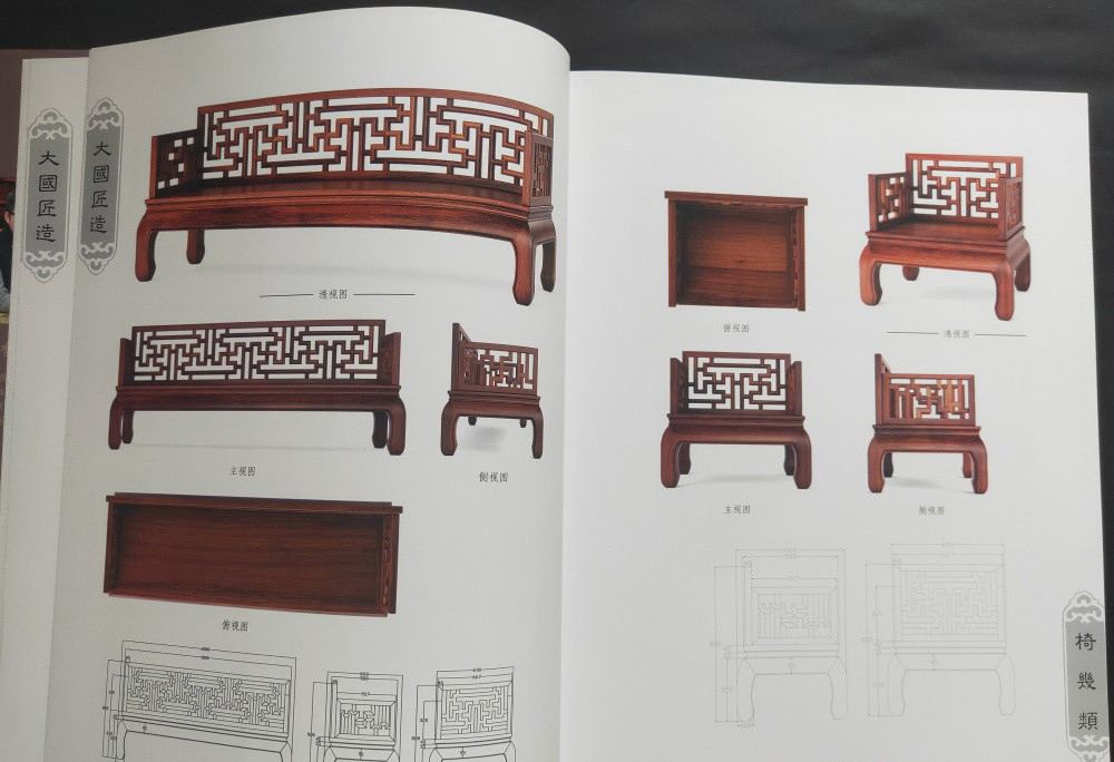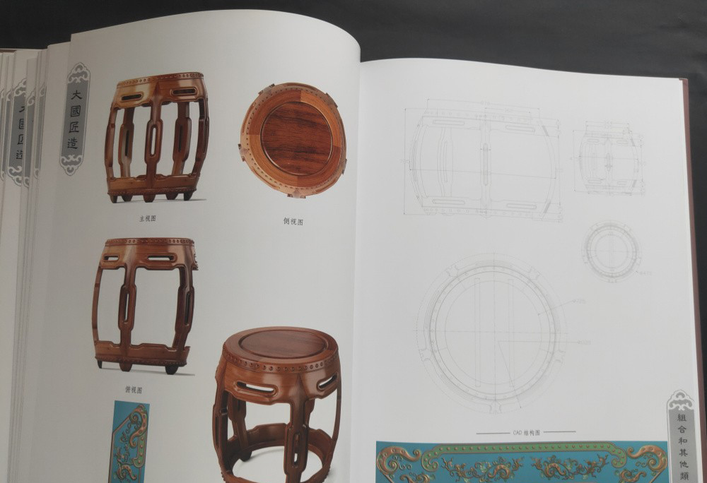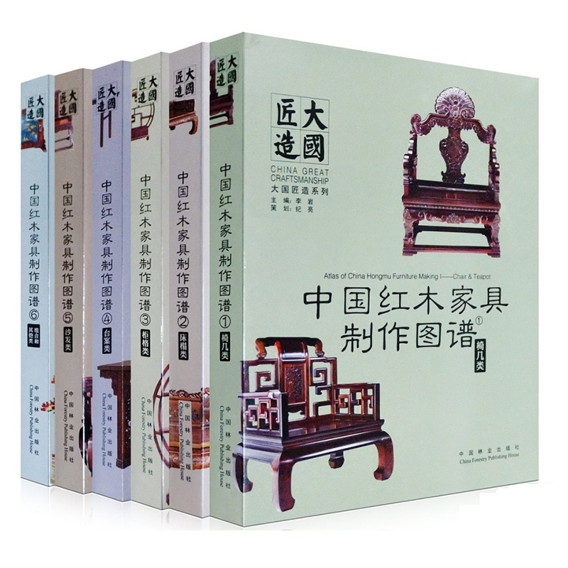 大國匠造 中國紅木家具製作圖譜(全6冊)椅幾類、櫃格類、台案類、沙發類、床榻類、組合和其他類 書中含實物圖 三視圖和CAD結構圖和雕刻效果圖